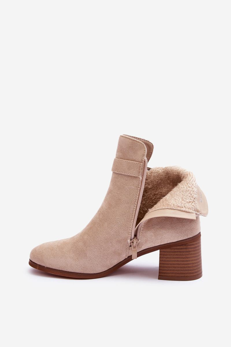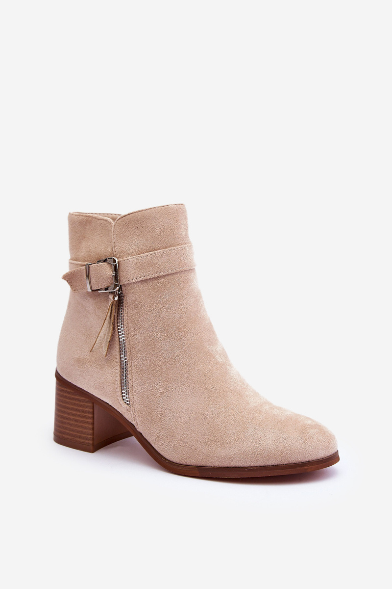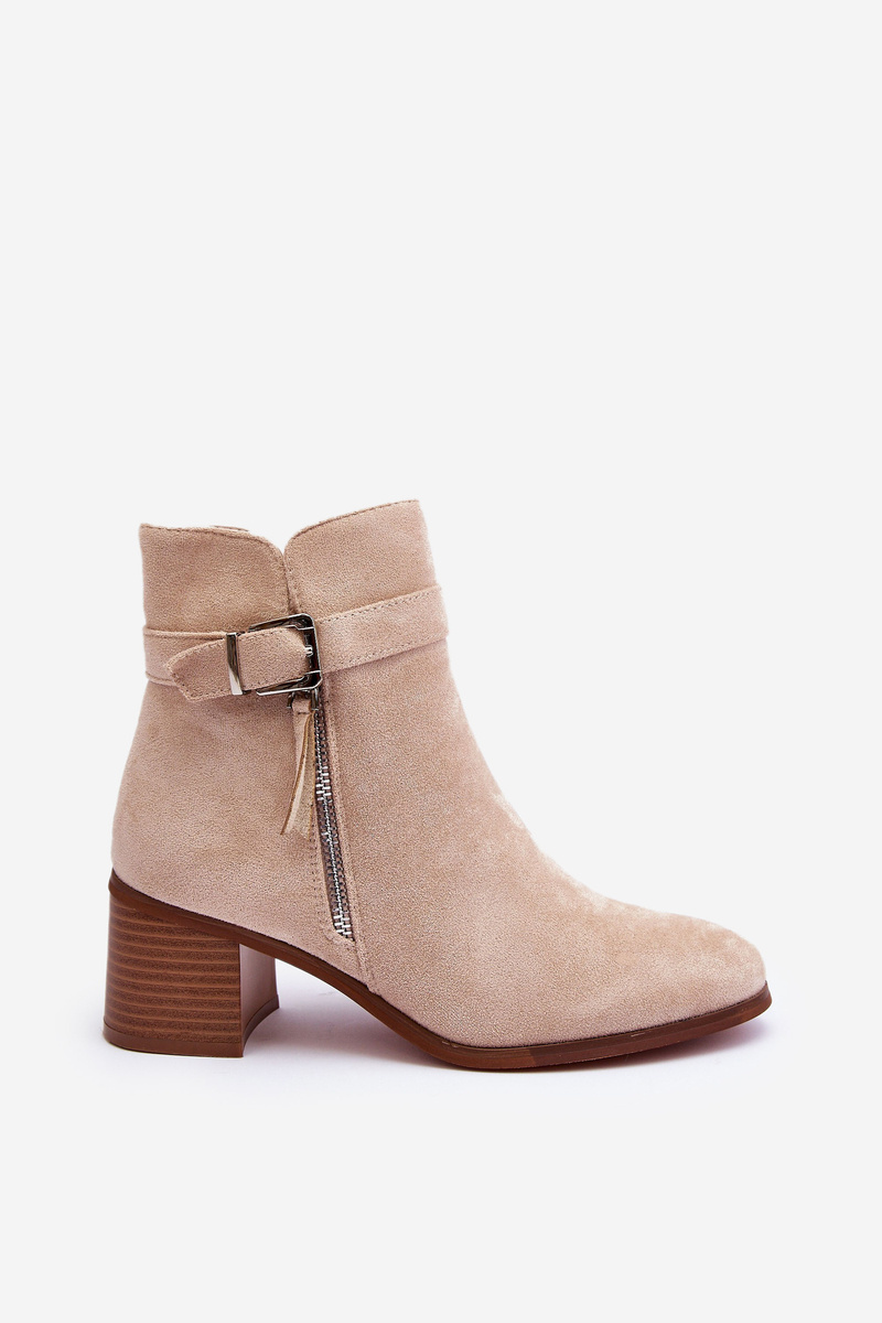 Zamszowe Botki Na Obcasie Z Klamrą Beżowe Bronte