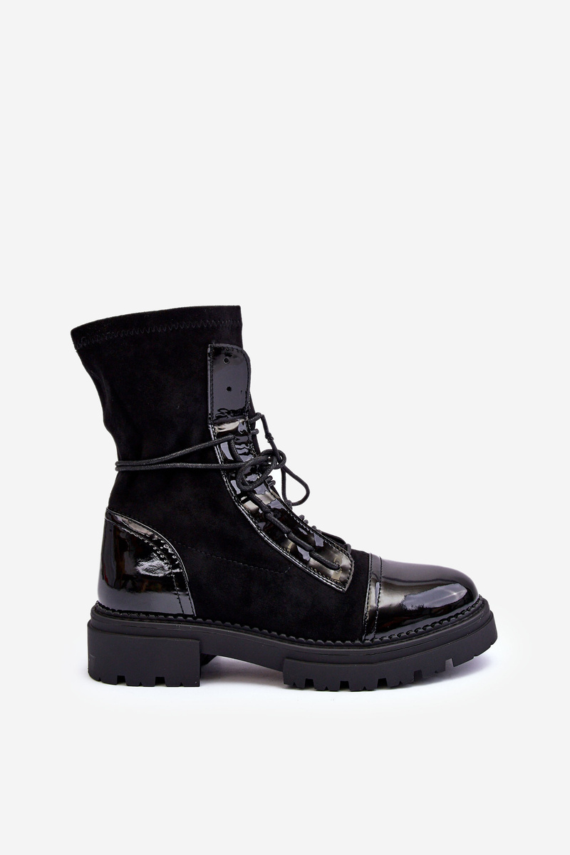Wsuwane botki wykonane z połączenia eko zamszu i eko skóry. Osadzone na płaskim, stabilnym obcasie. Zapiętek jest usztywniony. Wyjątkowy fason zachwyci niejedną miłośniczkę modowych nowości! Przy wyborze rozmiaru prosimy sugerować się tabelą rozmiarów.