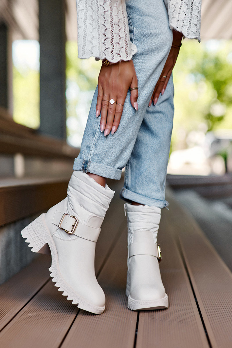 Ocieplane Skórzane Botki Z Klamrą Beżowe Osonia