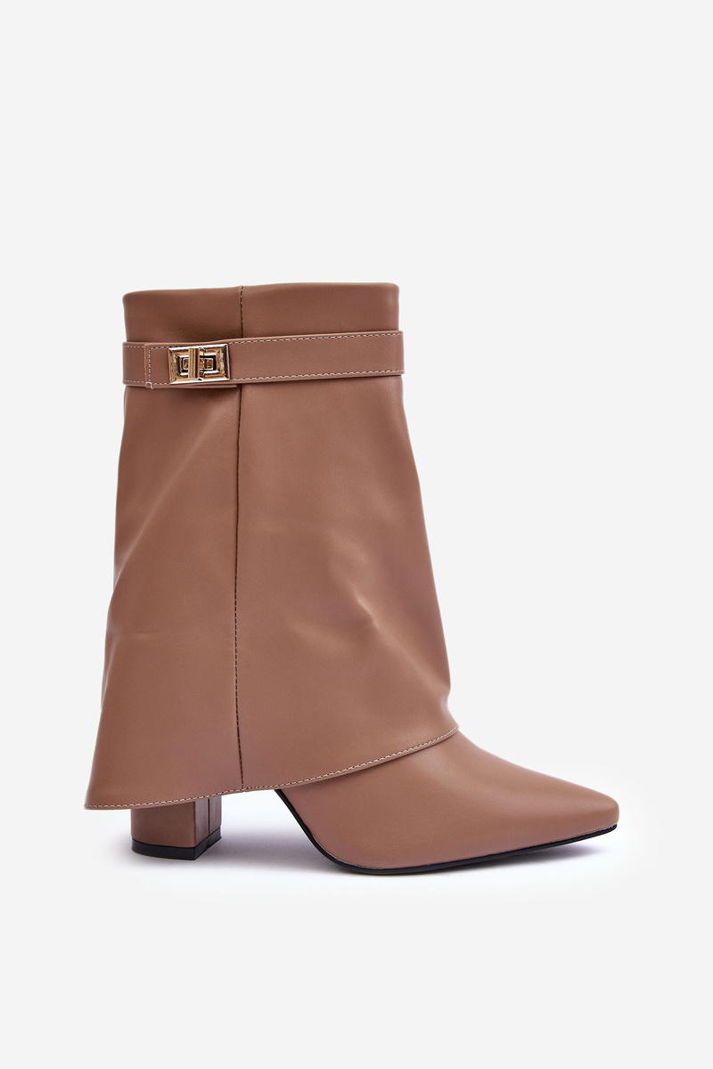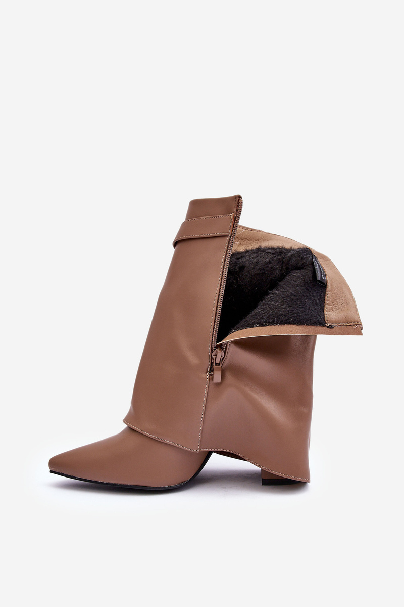 Skórzane Ocieplane Botki Na Słupku Ciemnobeżowe Chevie