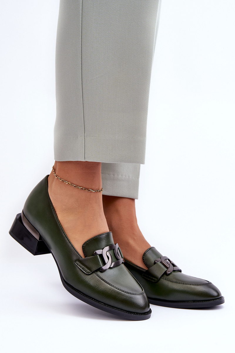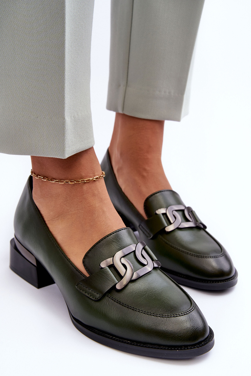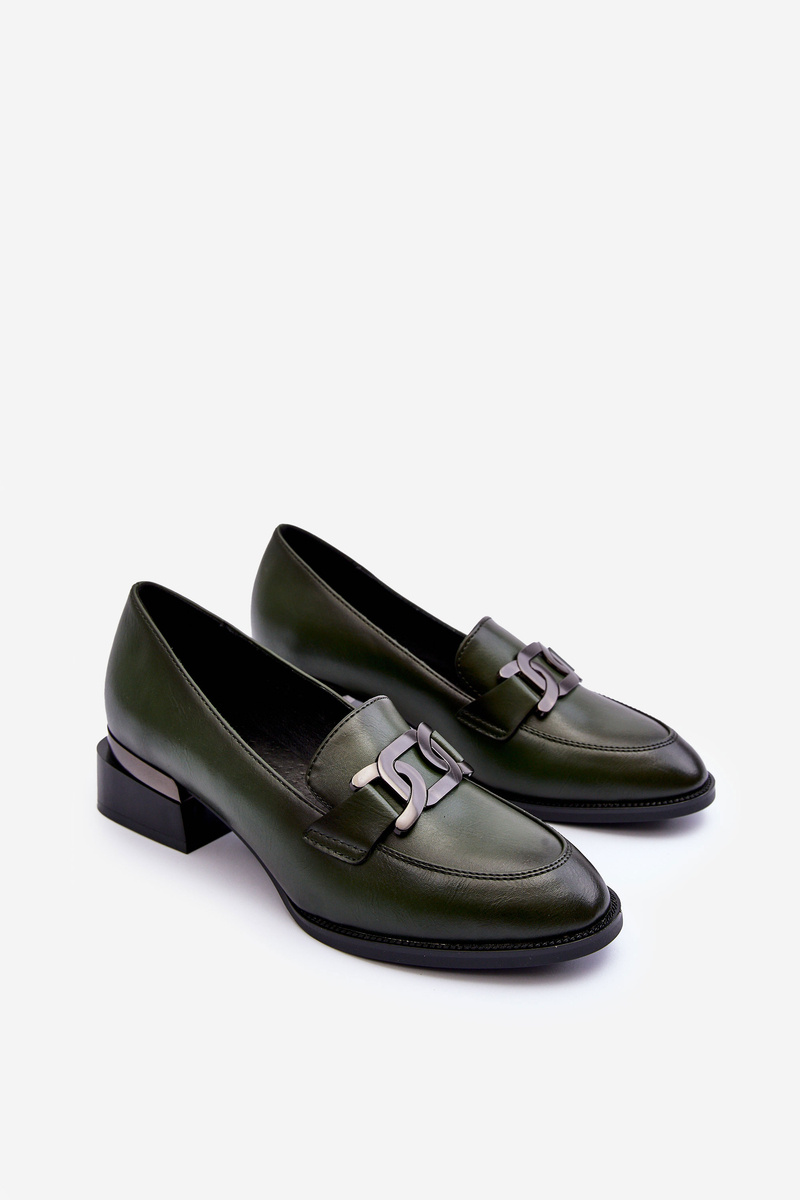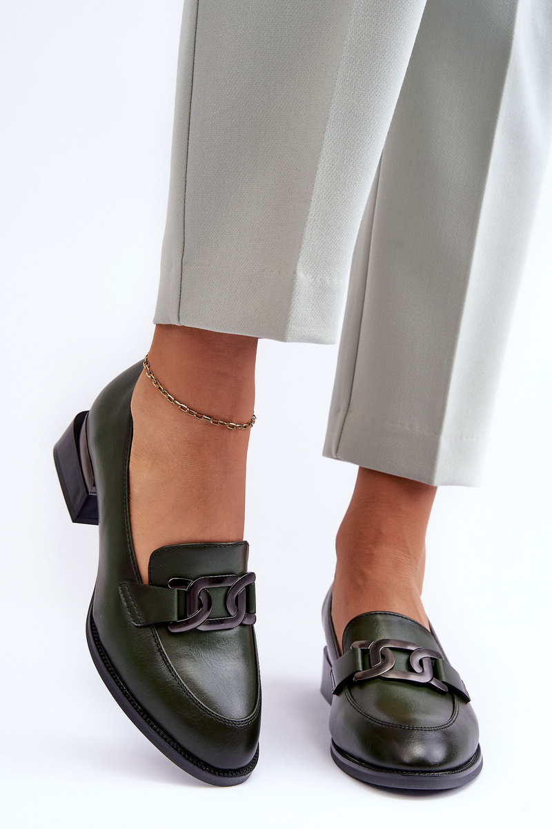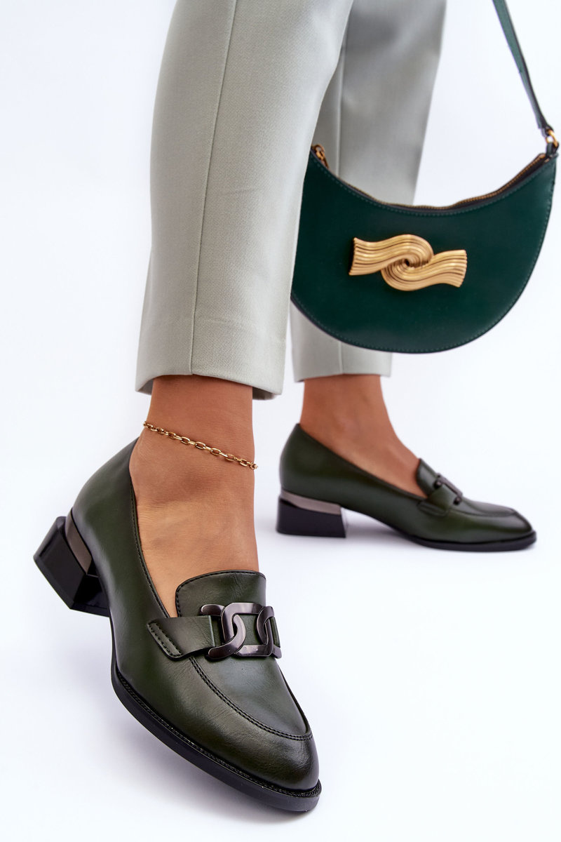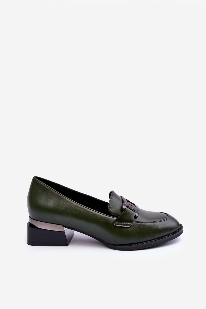 Skórzane Półbuty Mokasyny Na Obcasie Ciemnozielone Sakina