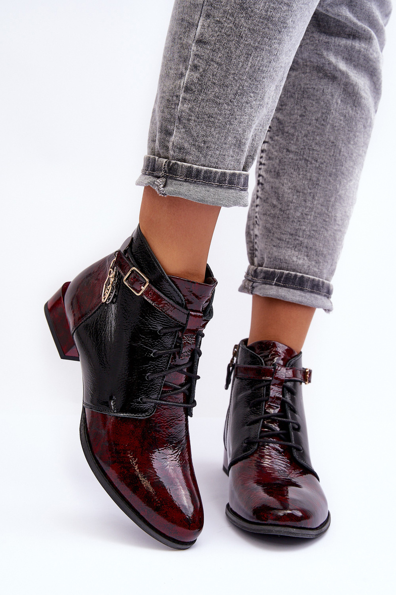 Damskie Skórzane Botki Trzewiki Maciejka 5743A-23 Bordowe