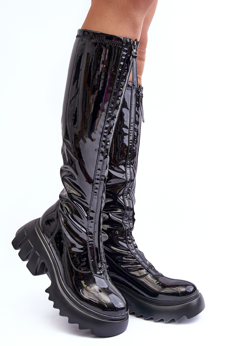 Lakierowane Kozaki Na Masywnej Platformie Z Suwakiem Czarne Ringo