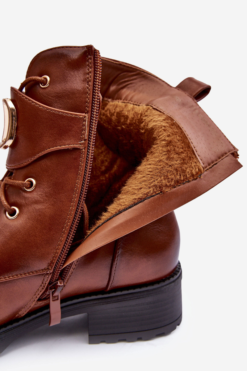 Damskie Ocieplane Botki Workery Złota Klamra Brązowe Vera