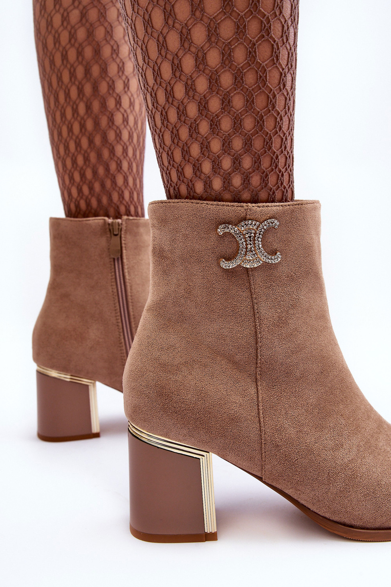 Zamszowe Botki Na Słupku Z Ozdobą Beżowe Dwinja