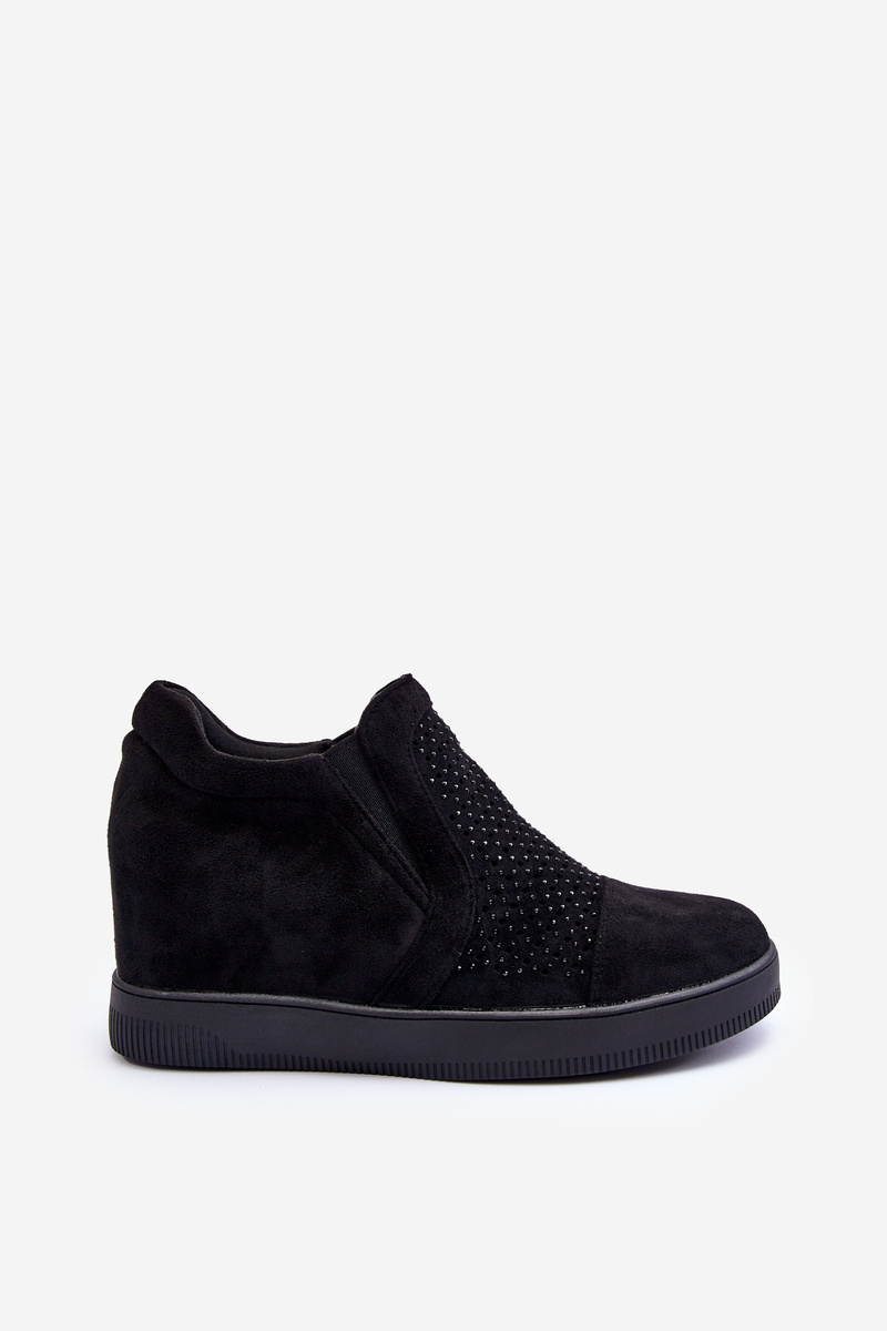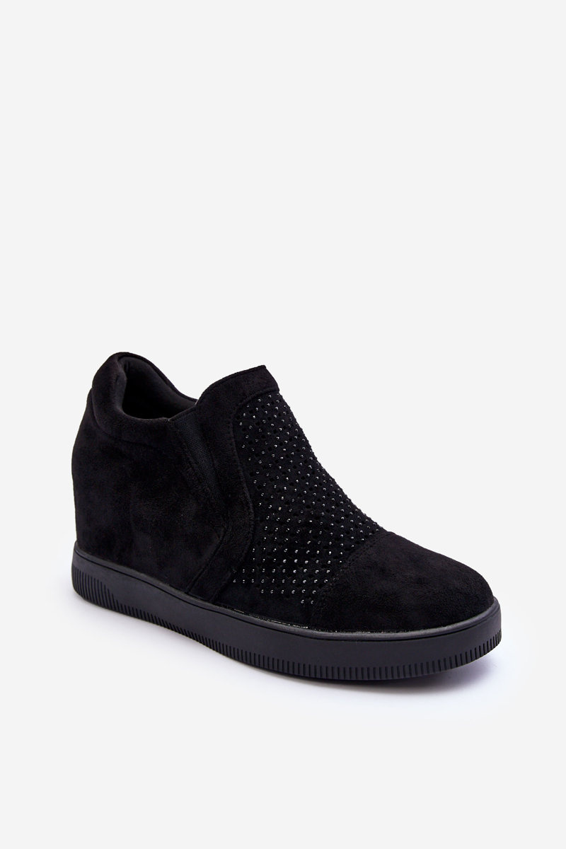 Niskie botki damskie osadzone na płaskiej podeszwie. Wykonane z eko zamszu. Przód ozdobiony małymi dżetami. Noski zaokrąglone, zapiętek usztywniony. Model wsuwany. Miękka eko skórzana wkładka zapewni komfortowe użytkowanie obuwia.