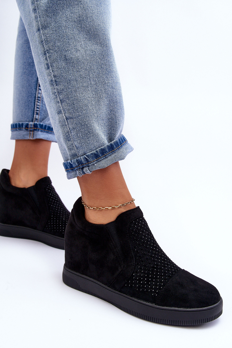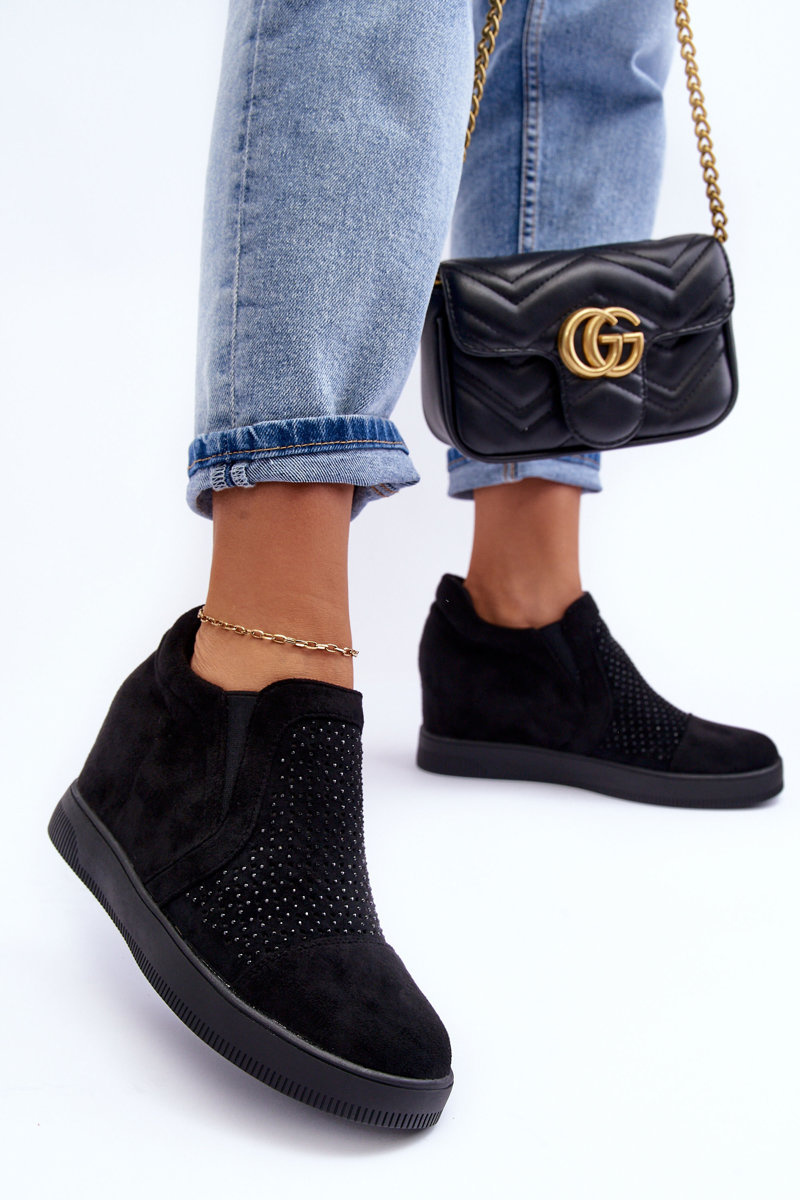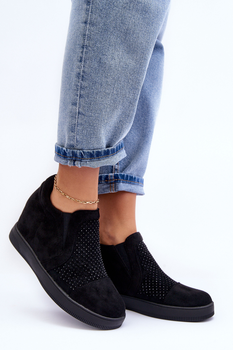Niskie Zamszowe Zdobione Botki Damskie Czarne Afarena