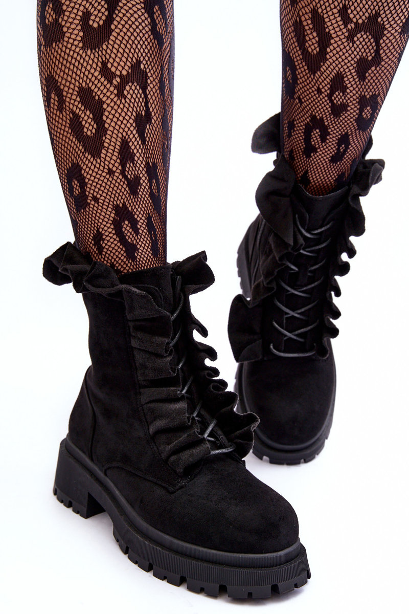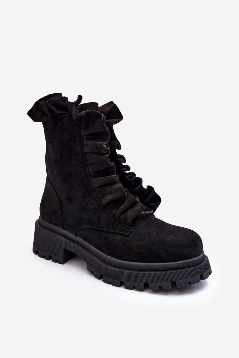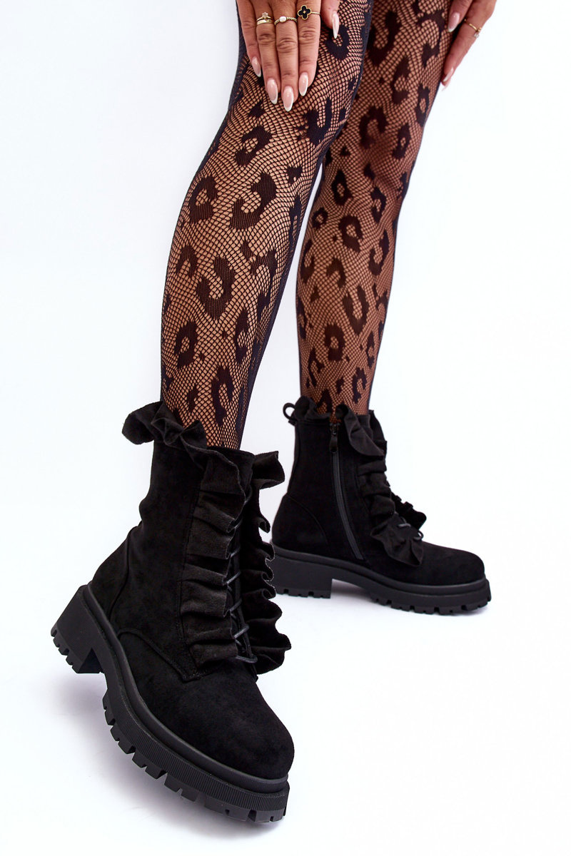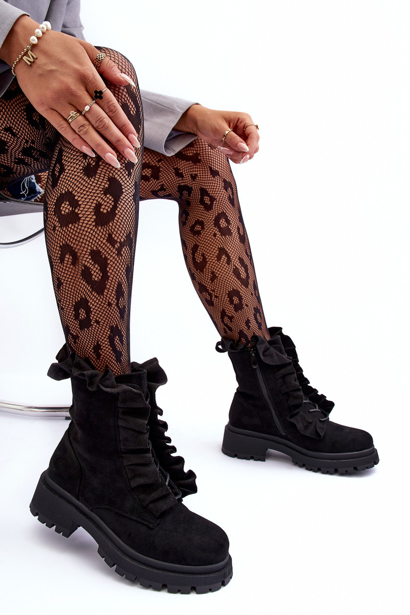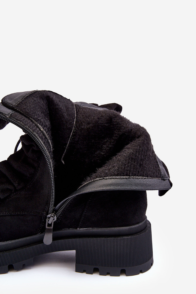 Zamszowe Ocieplane Botki Workery Na Płaskim Obcasie Czarne Nacelle