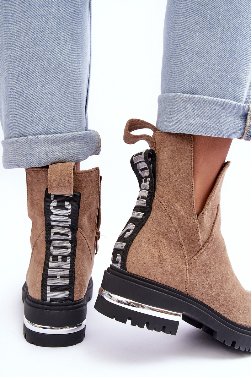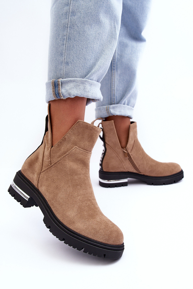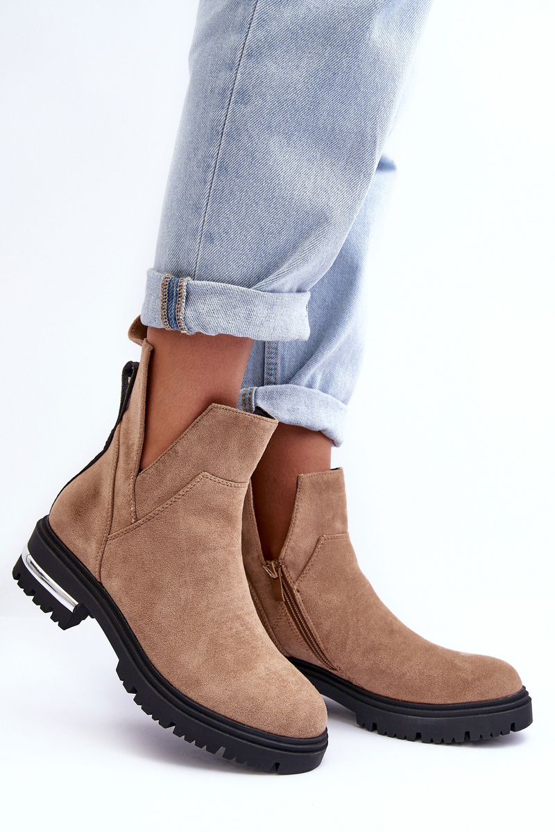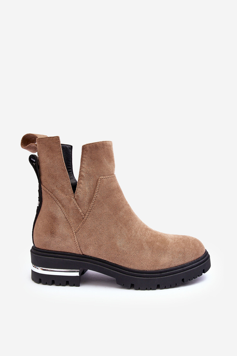 Zamszowe Botki Na Płaskim Obcasie Z Wycięciami Beżowe Lamedella