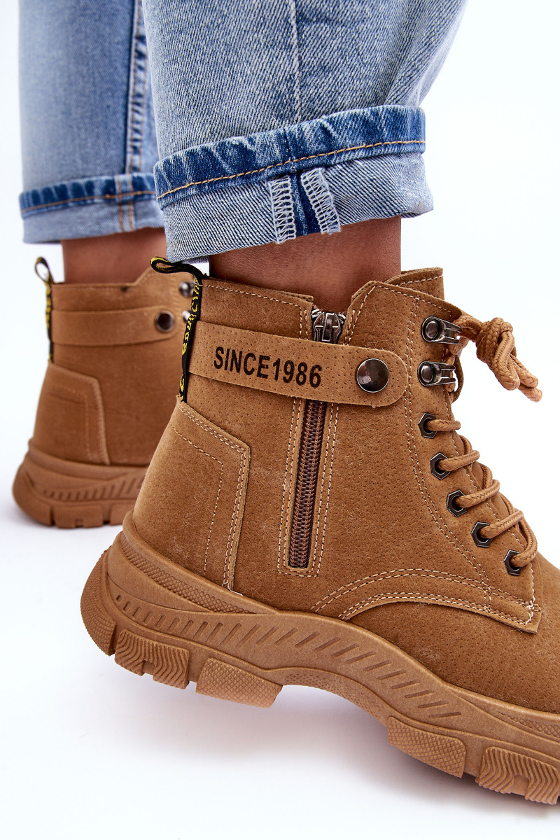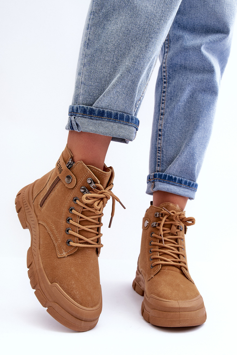 Ocieplane Zamszowe Damskie Botki Trapery Camel Jailina