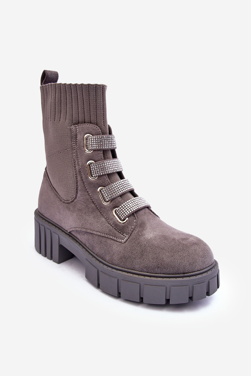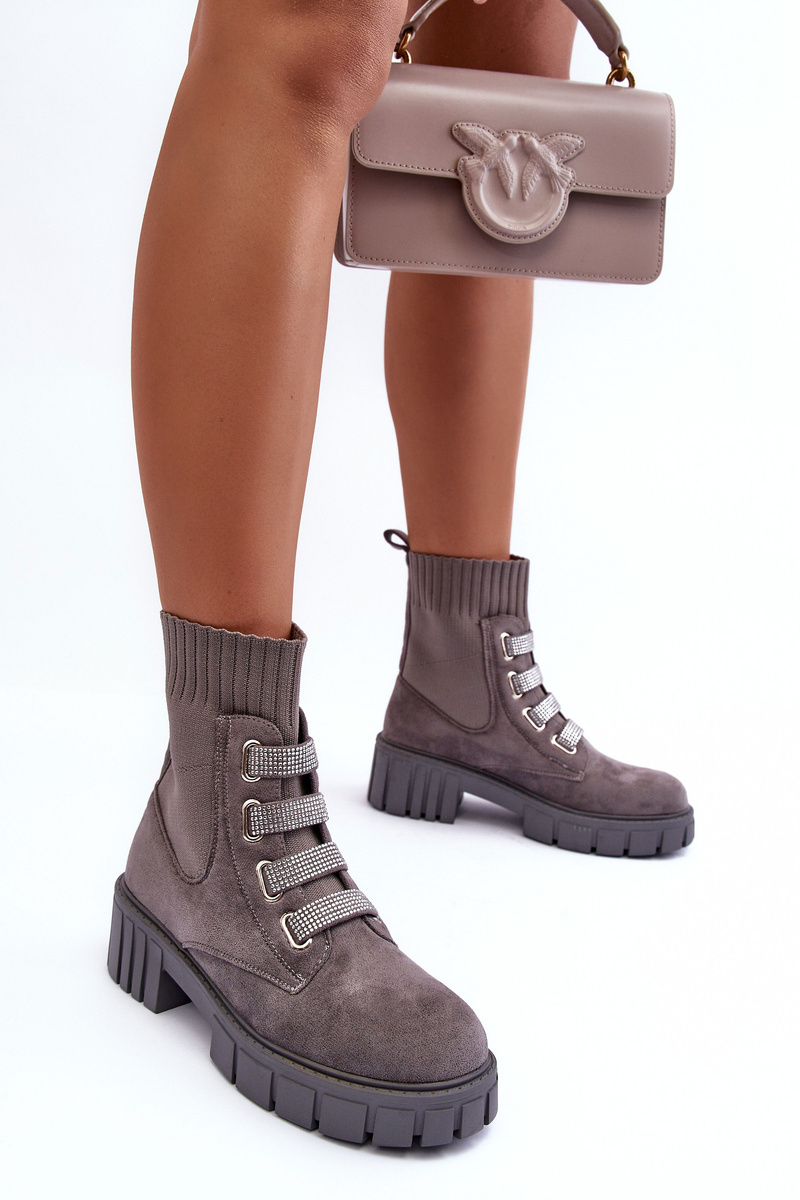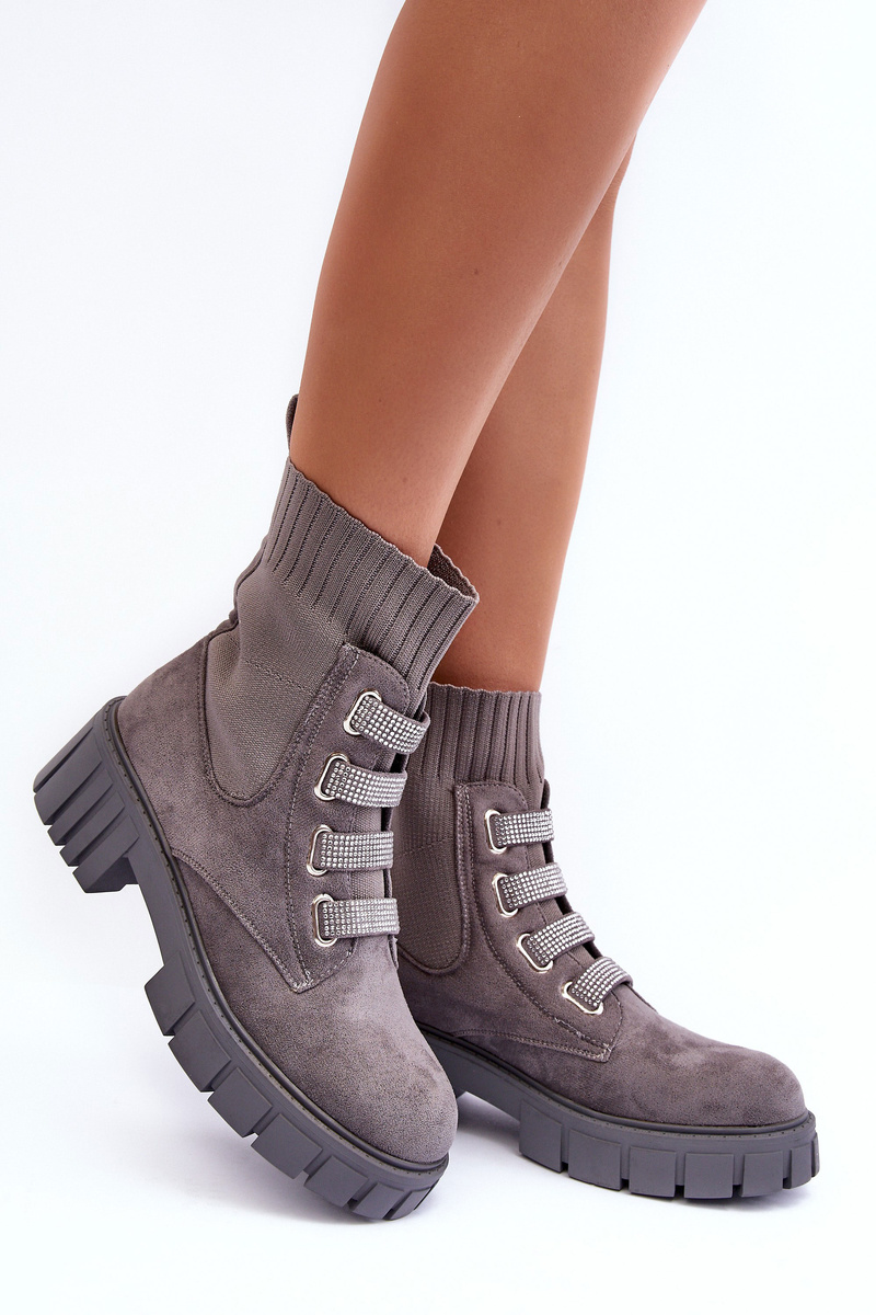 Zamszowe Wsuwane Botki Skarpetkowe Szare Hope