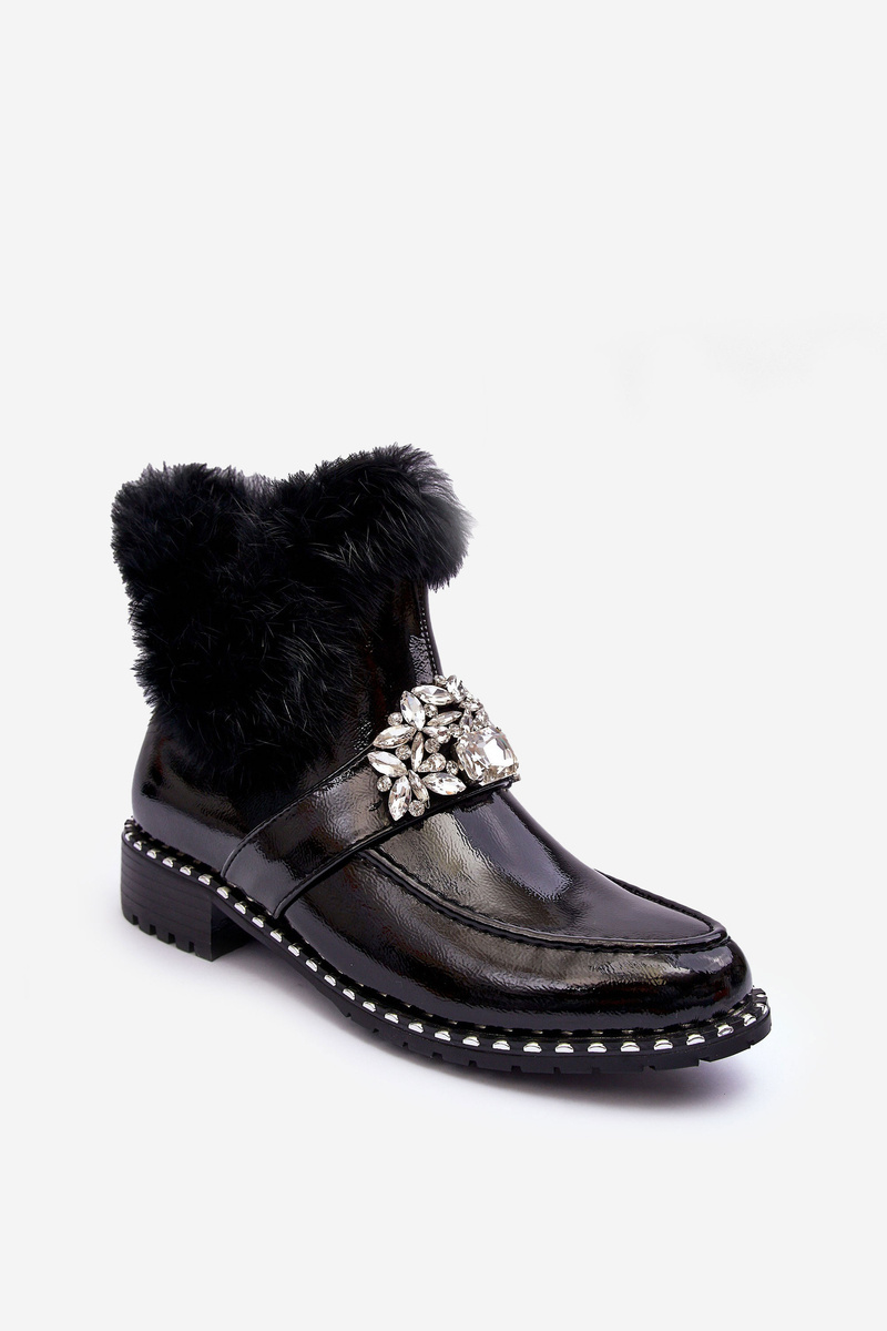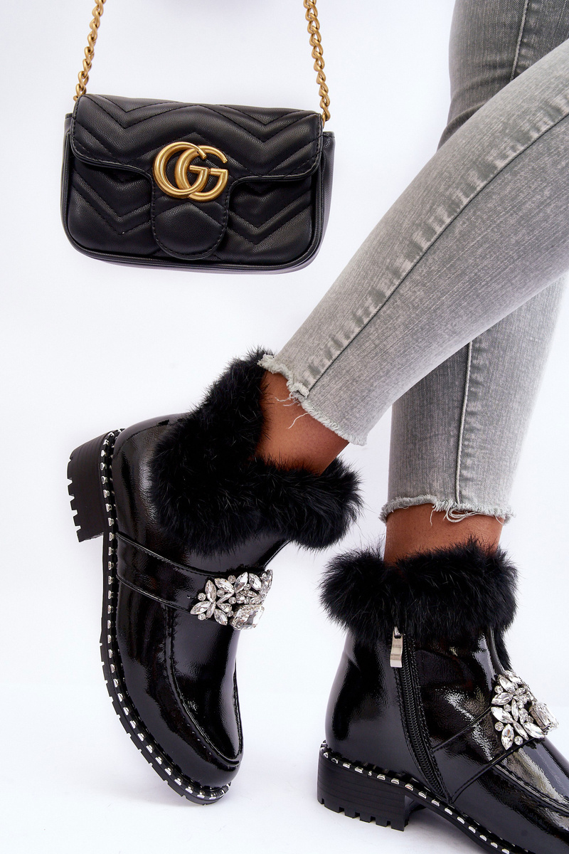 Lakierowane Botki Z Ozdobą I Futerkiem S.Barski MR870-73 Czarne