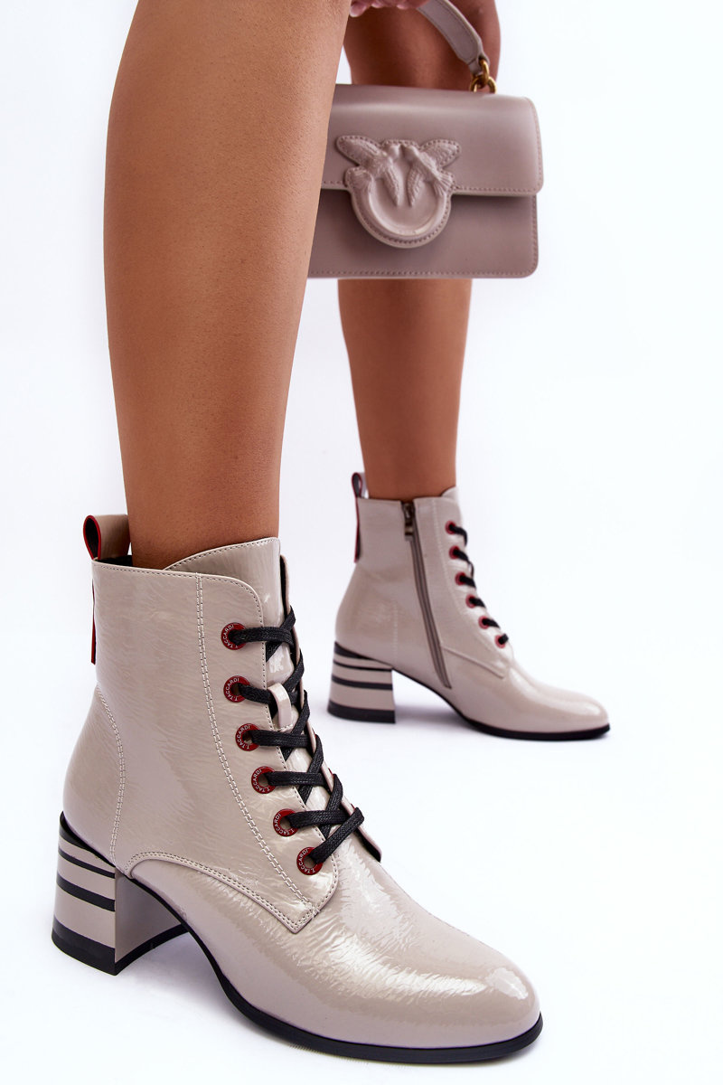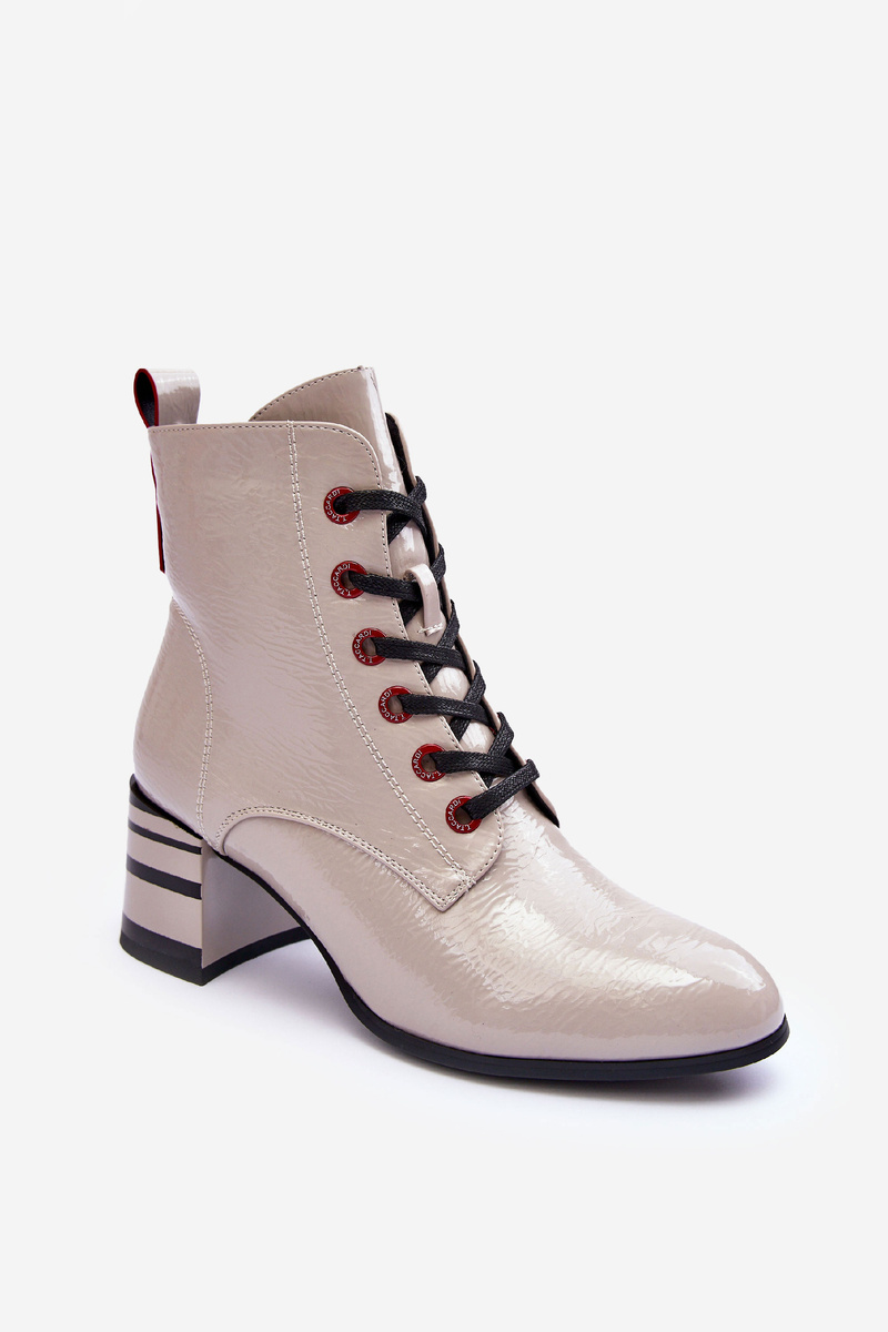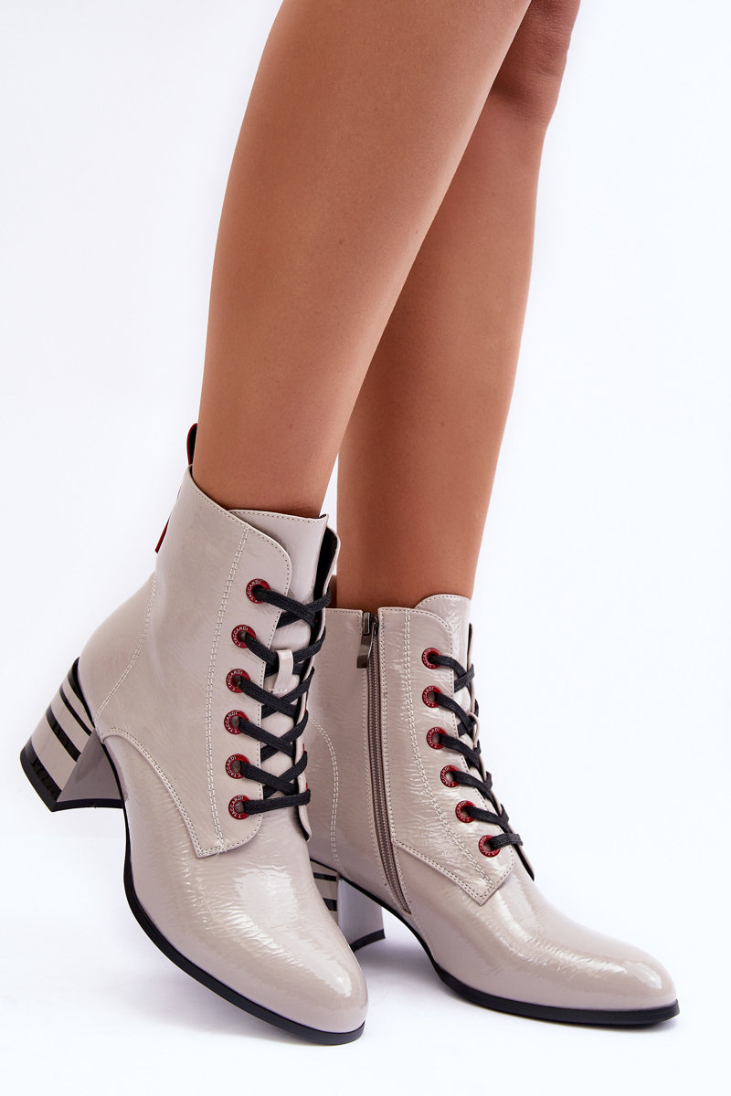 Lakierowane Botki Na Obcasie S.Barski MR870-49 Jasnoszare