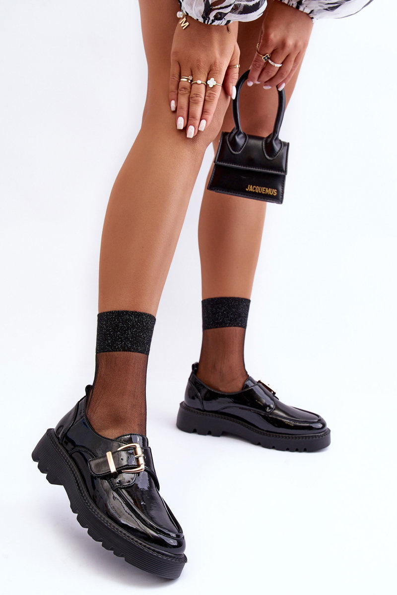 Lakierowane Półbuty Na Płaskim Obcasie Z Klamrą Czarne Meara
