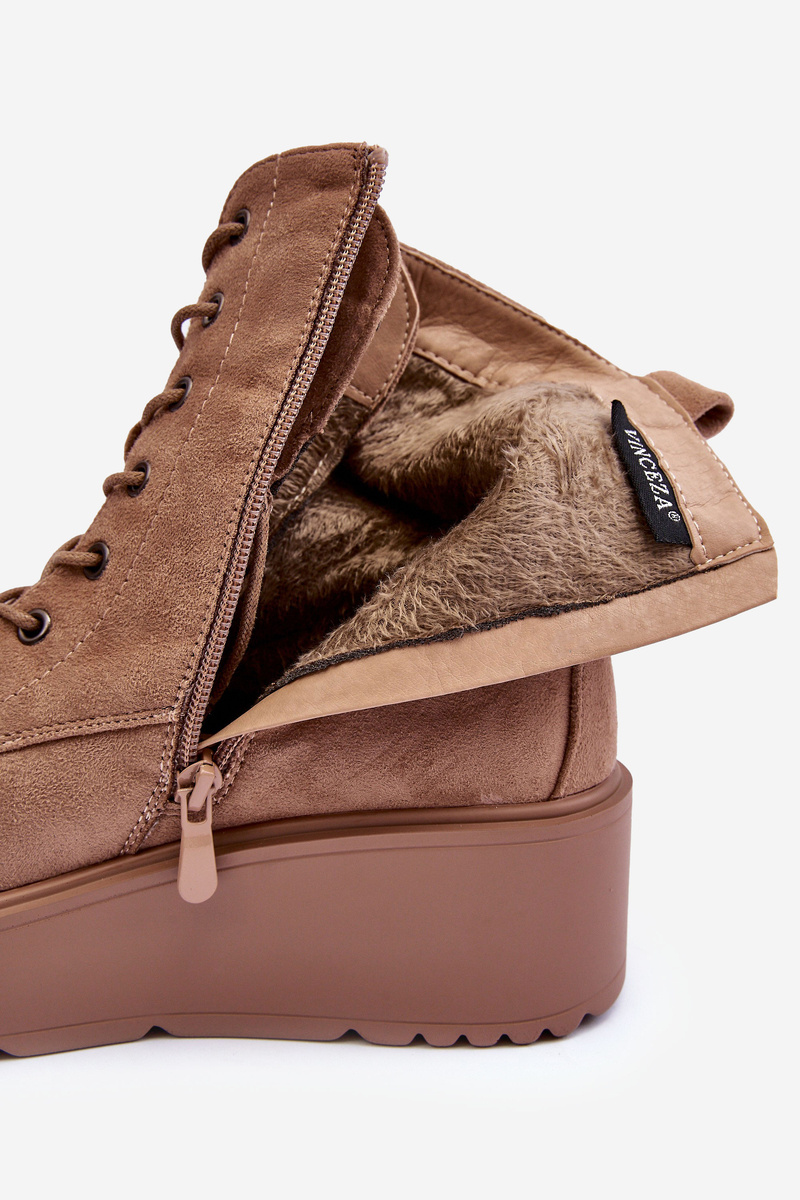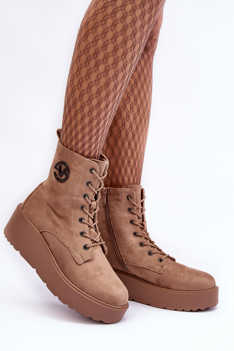 Zamszowe Botki Workery Na Masywnej Platformie Koturnie Beżowe Lavica