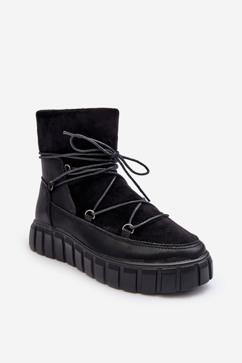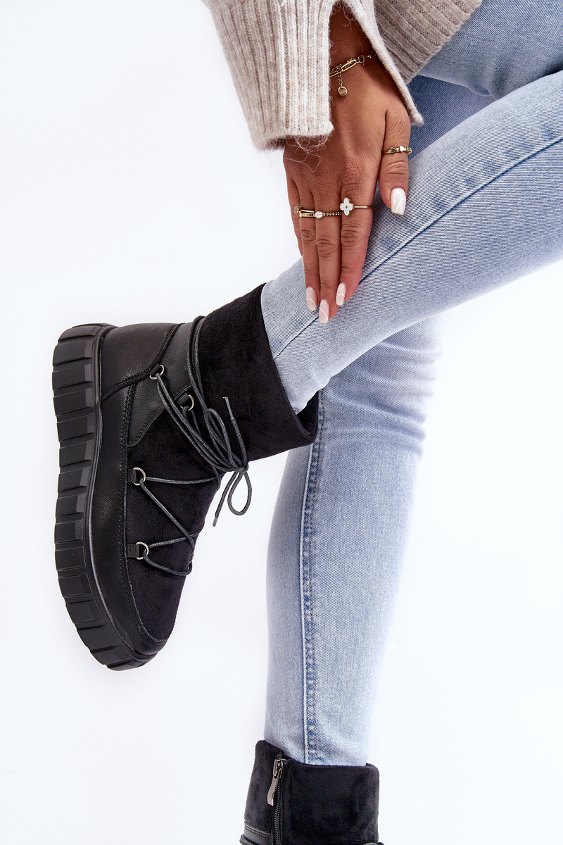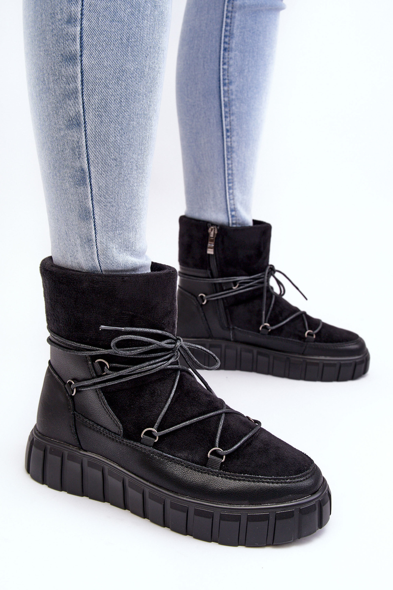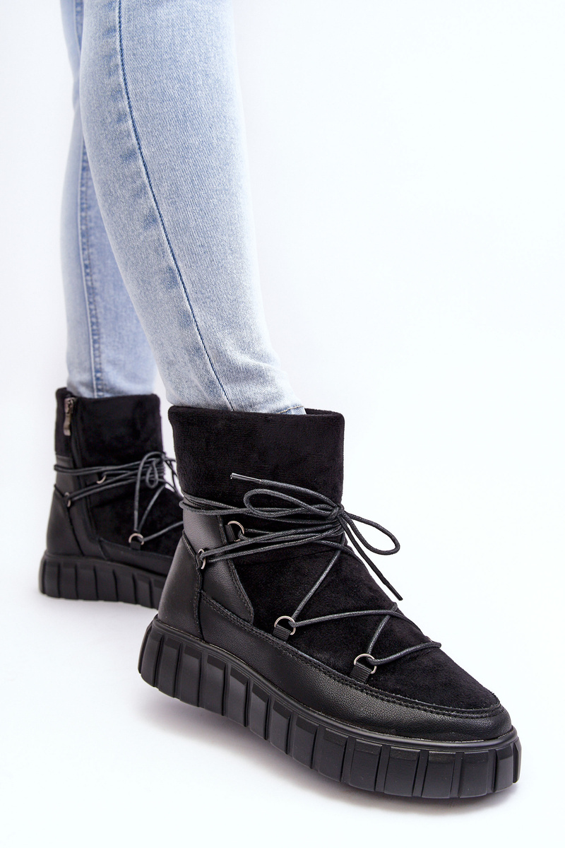 Skórzane Śniegowce Botki Na Platformie Czarne Maxava