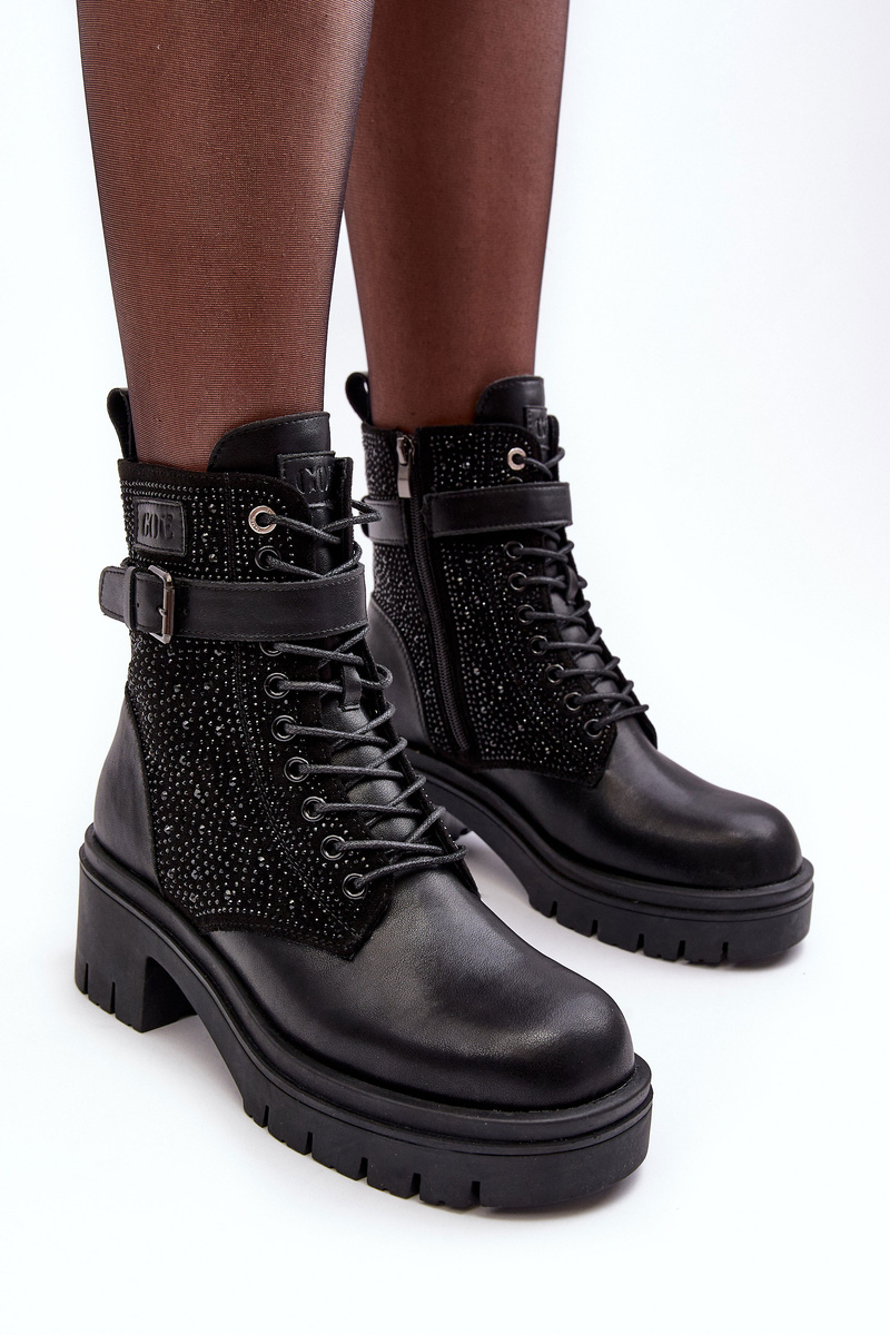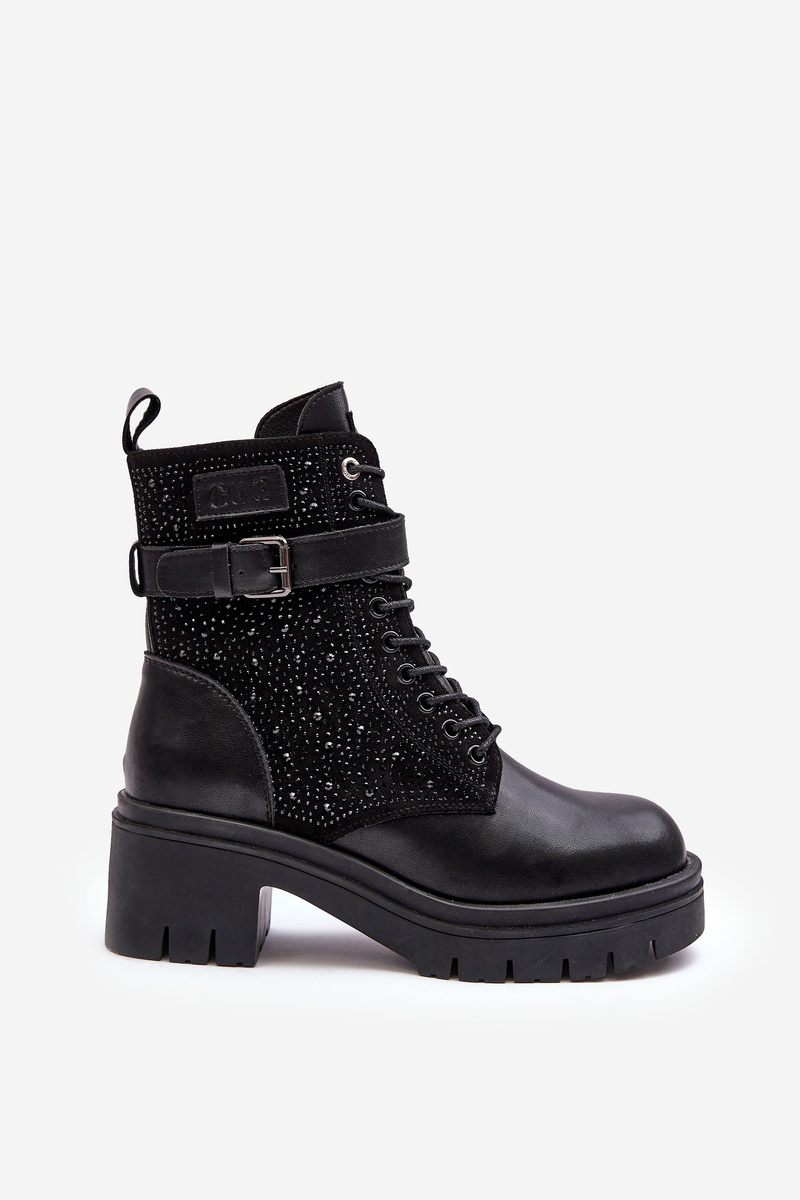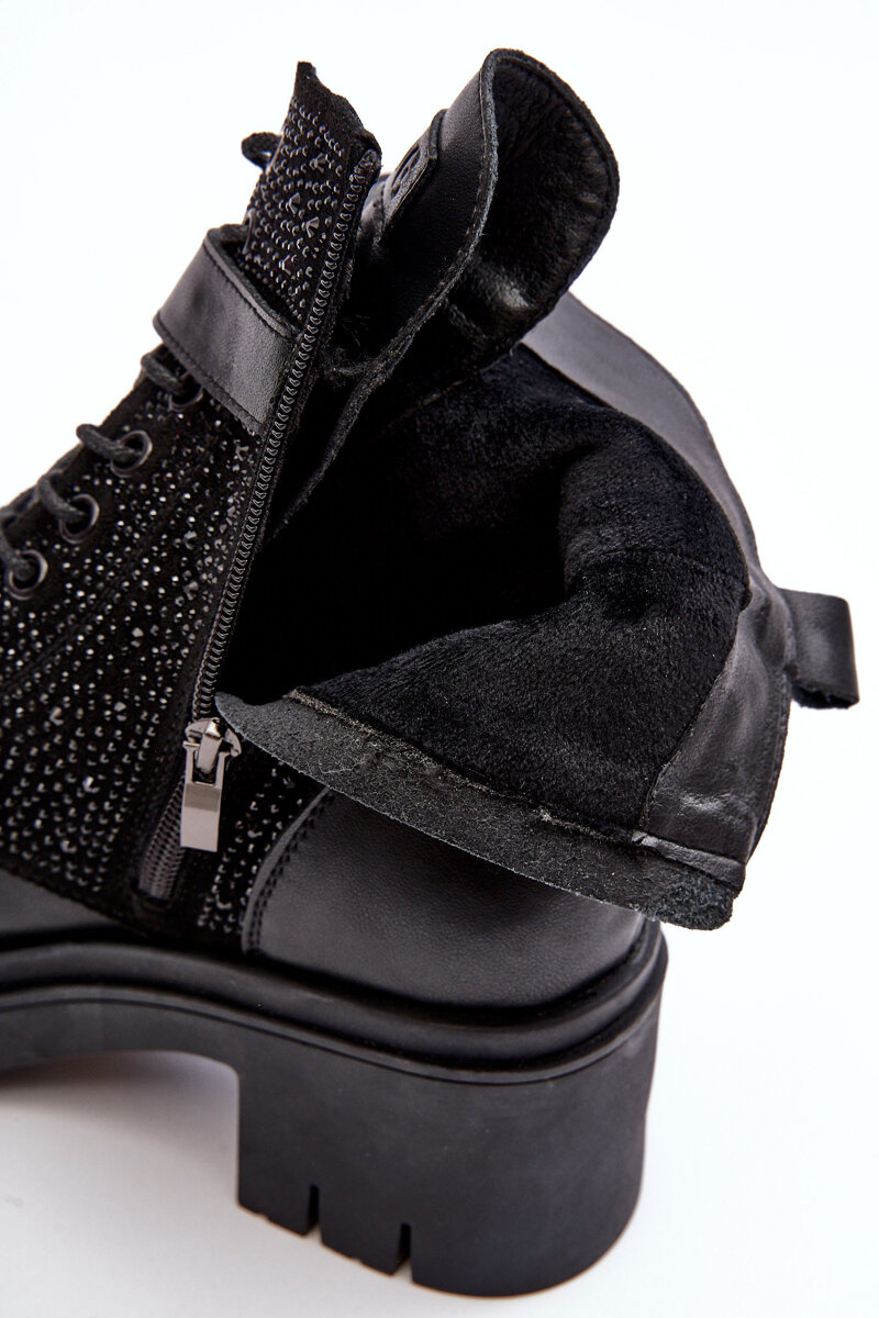 Skórzane Botki Workery Zdobione Dżetami GOE MM2N4041 Czarne