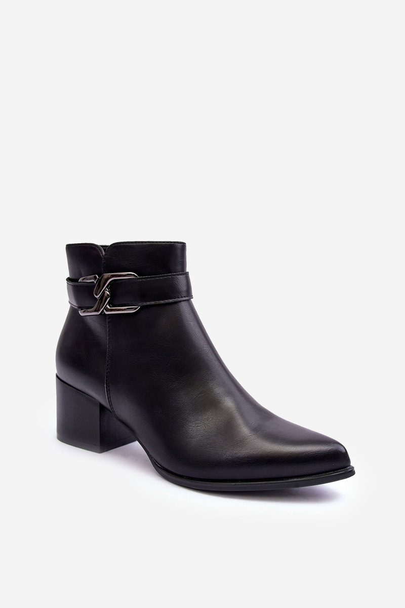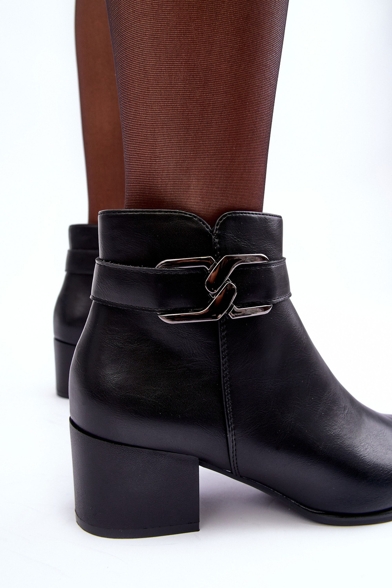 Damskie Botki Na Obcasie Z Ozdobą Czarne Janeya