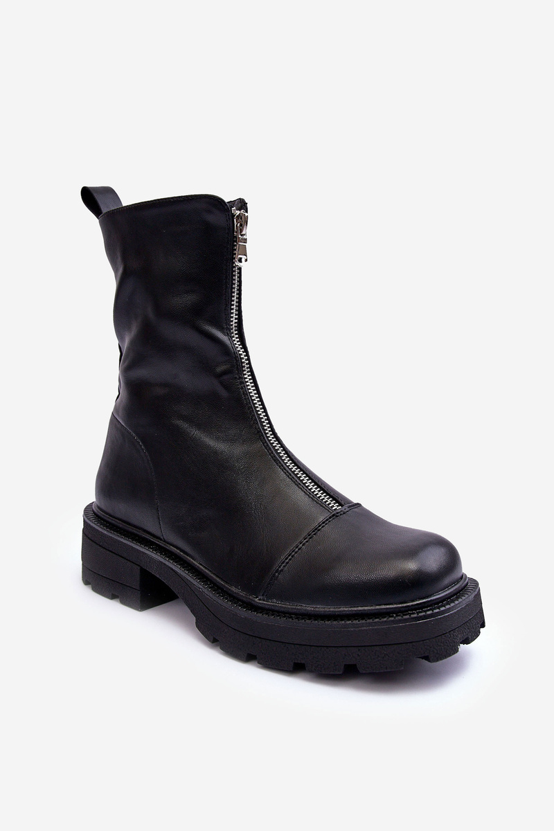Damskie Botki Skórzane Z Suwakiem Czarne Aravalur