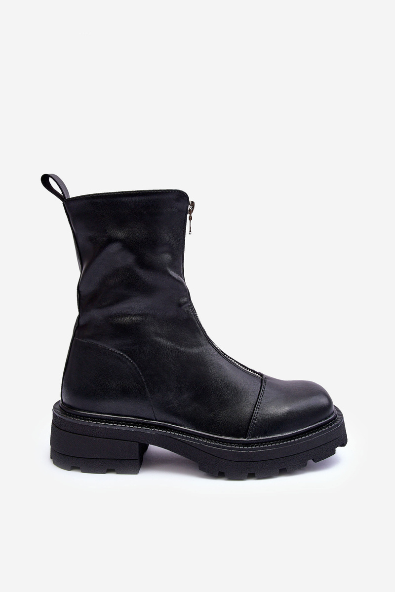 Botki damskie wykonane z eko skóry. Osadzone na płaskim, stabilnym obcasie i grubej podeszwie. Zapinane na suwak z przodu cholewki. Zapiętek jest usztywniony. Model ten będzie idealnym dopełnieniem jesiennych stylizacji! Przy wyborze rozmiaru prosimy sugerować się tabelą rozmiarów.