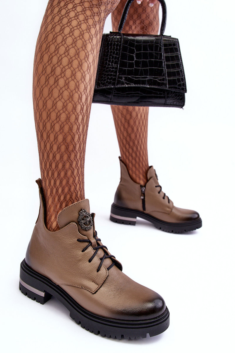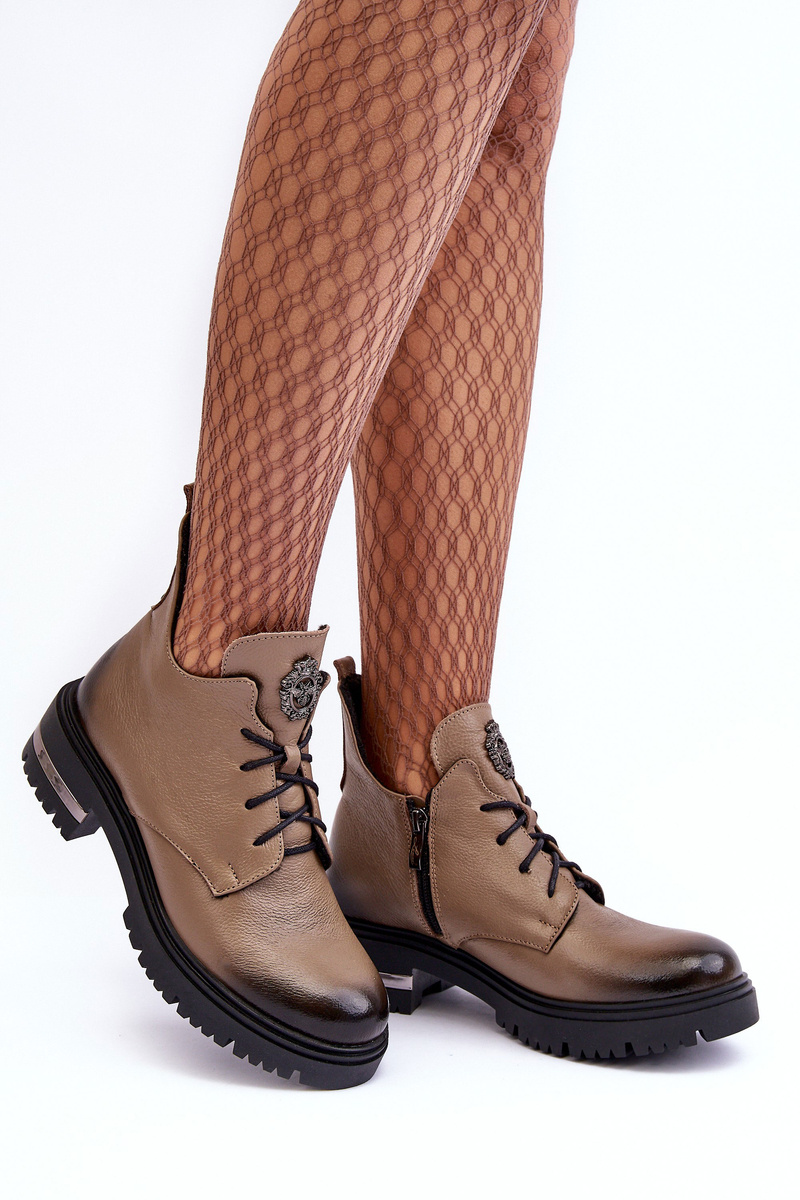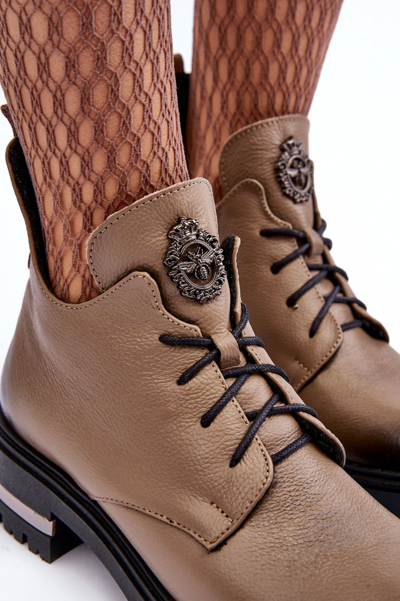 Damskie Skórzane Botki Na Płaskim Obcasie Beżowe Lemar Charline