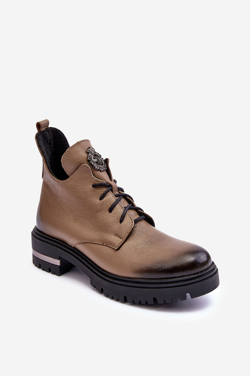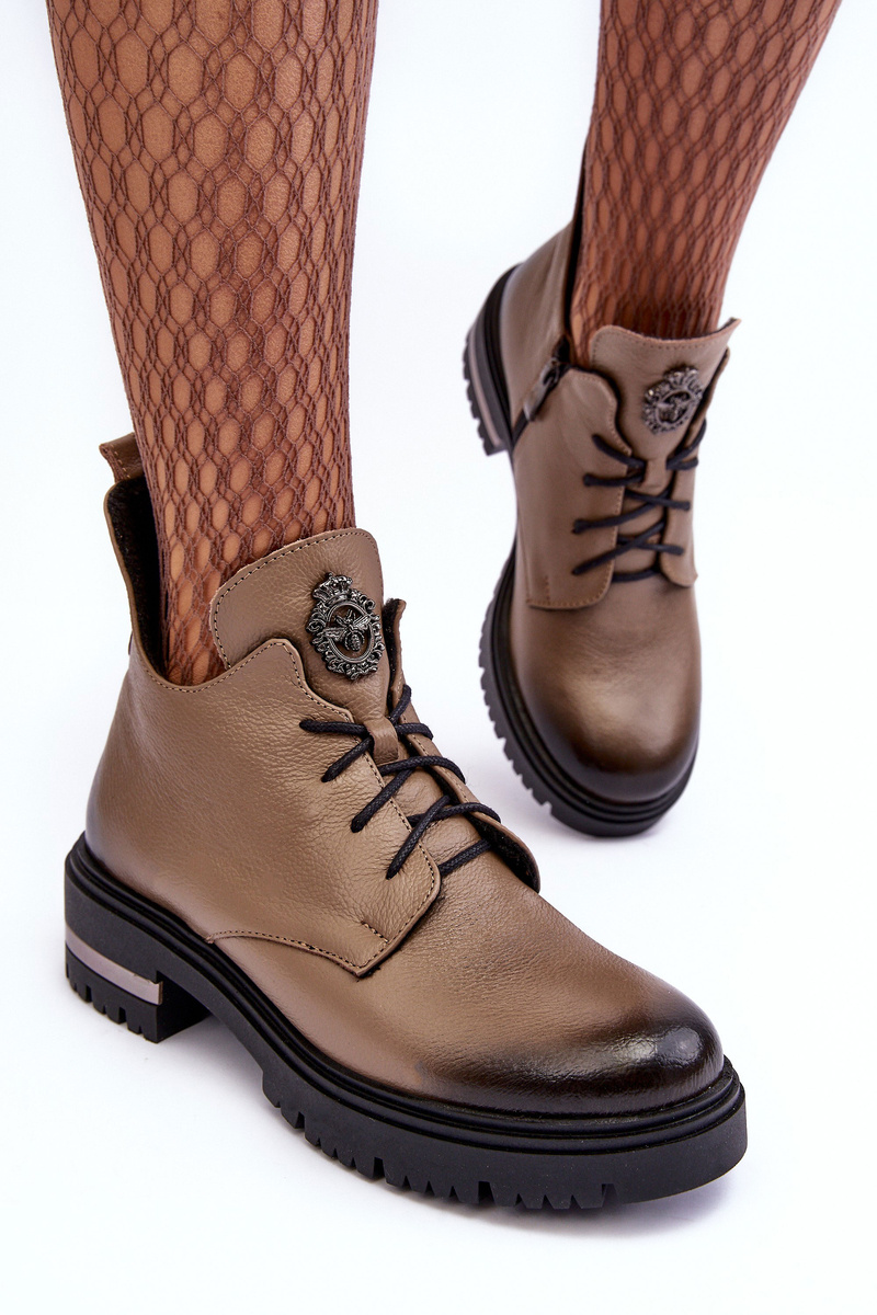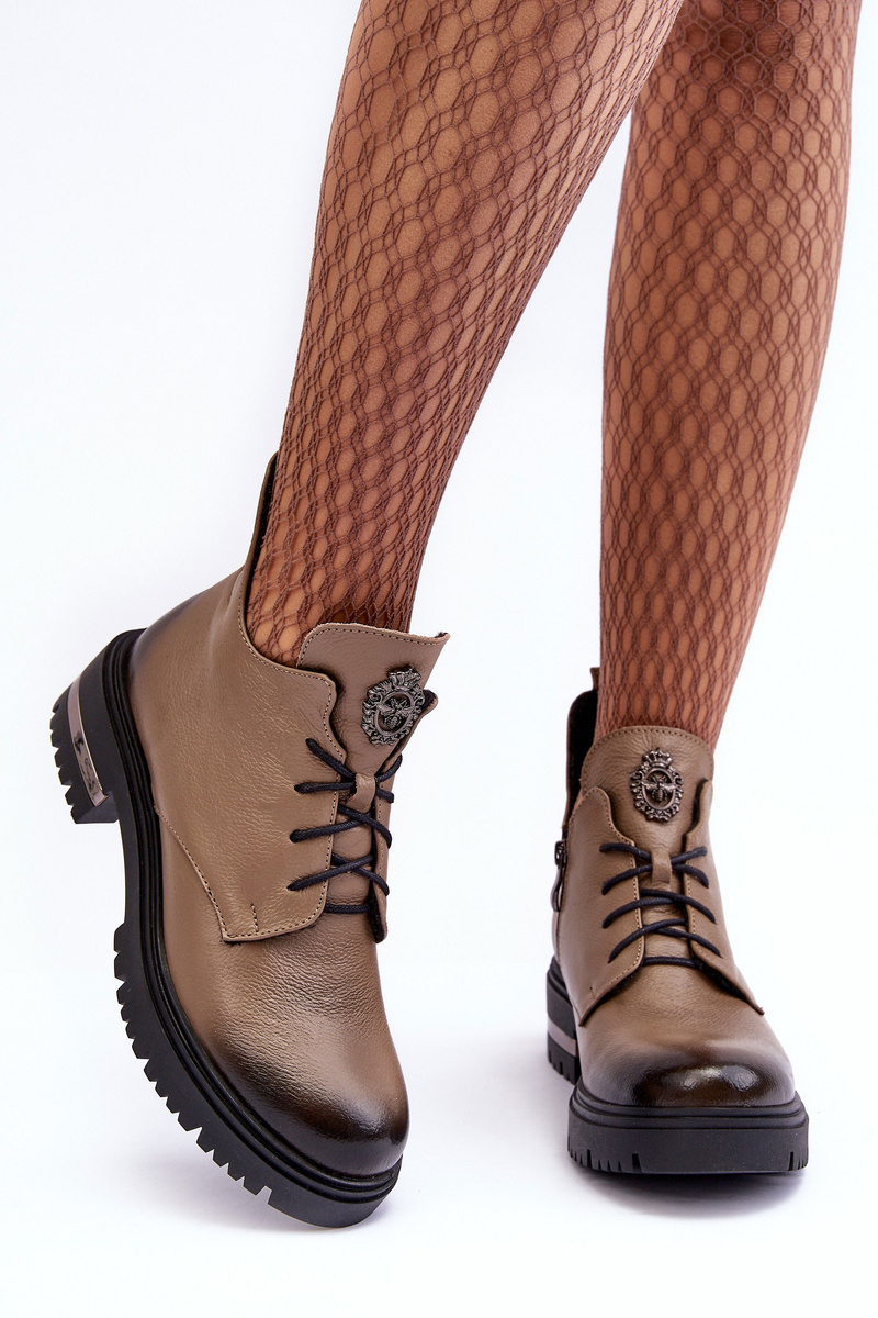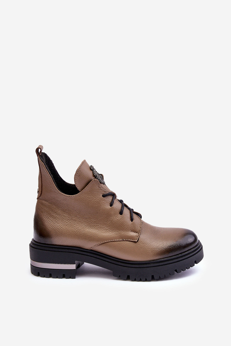 Damskie Skórzane Botki Na Płaskim Obcasie Beżowe Lemar Charline