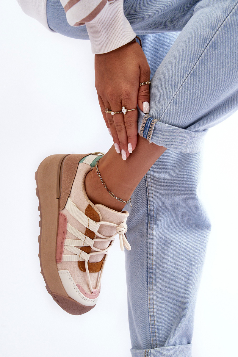 Damskie Zamszowe Buty Sportowe Na Platformie Beżowe Rohan