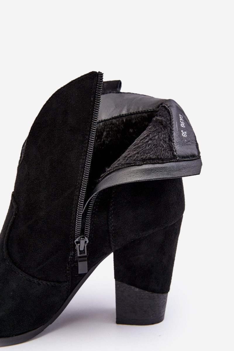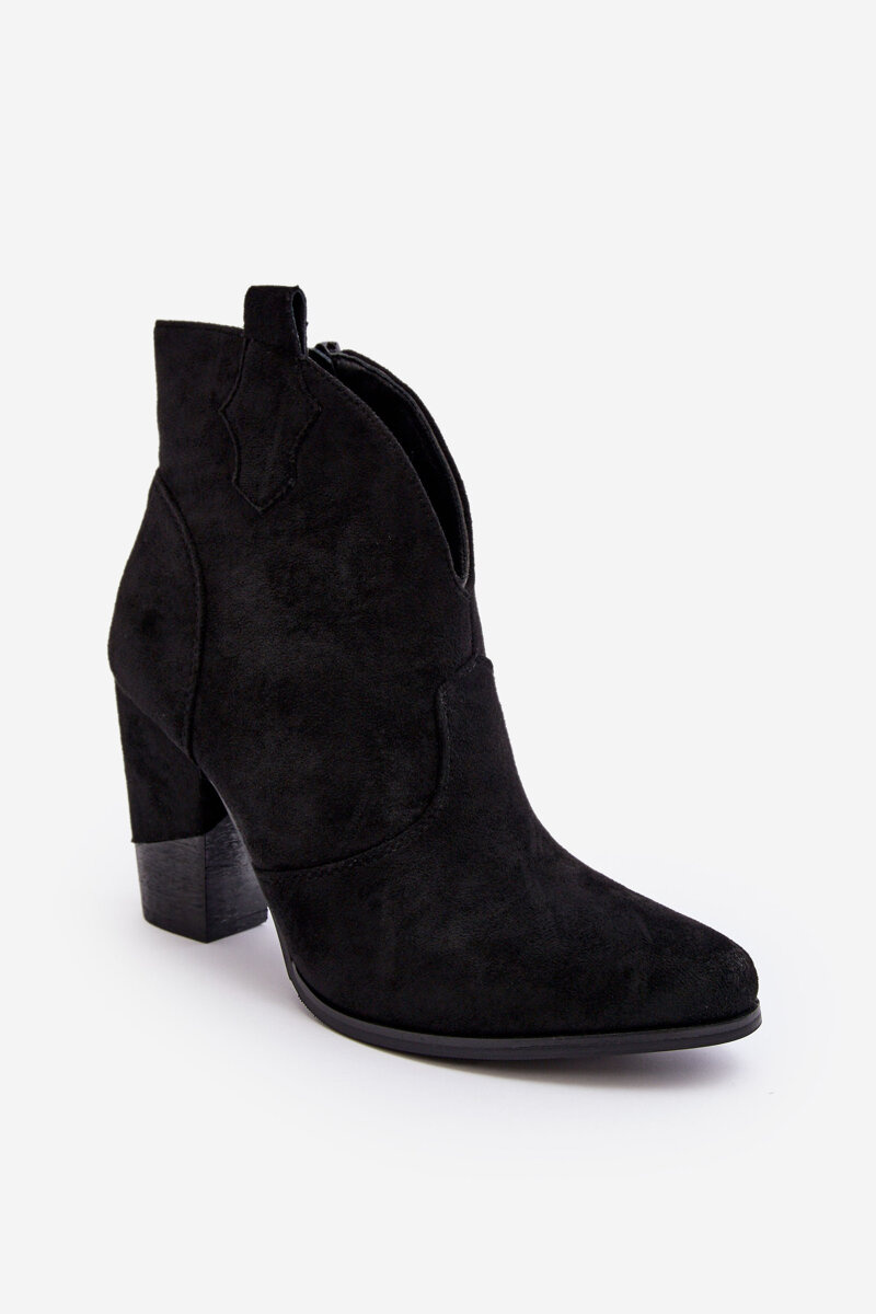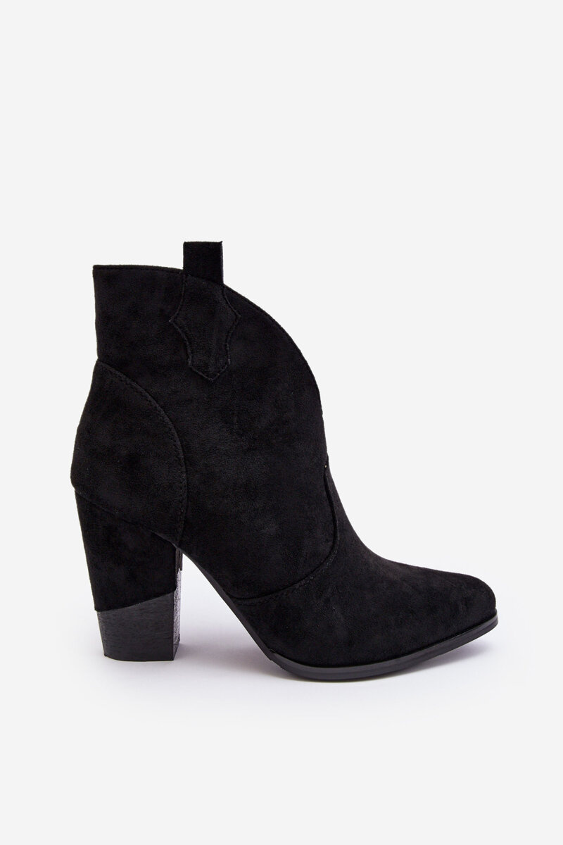 Zamszowe Botki Kowbojki Na Słupku Czarne Tanner