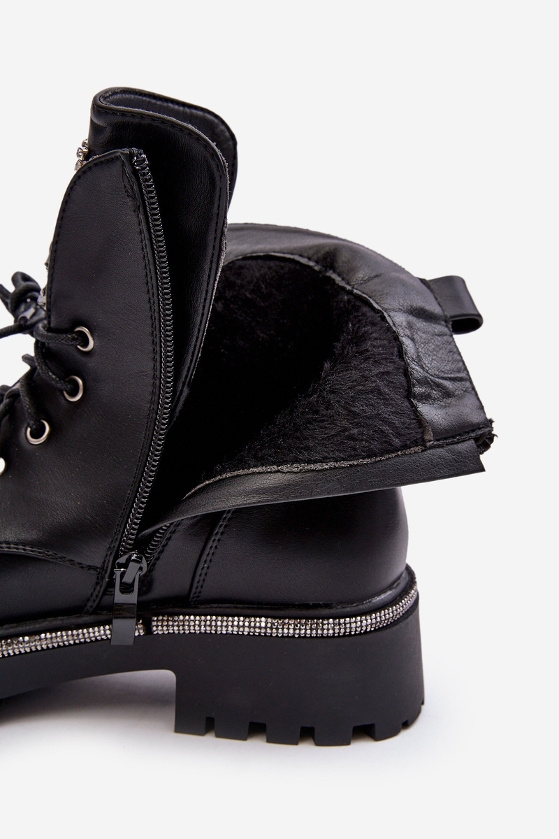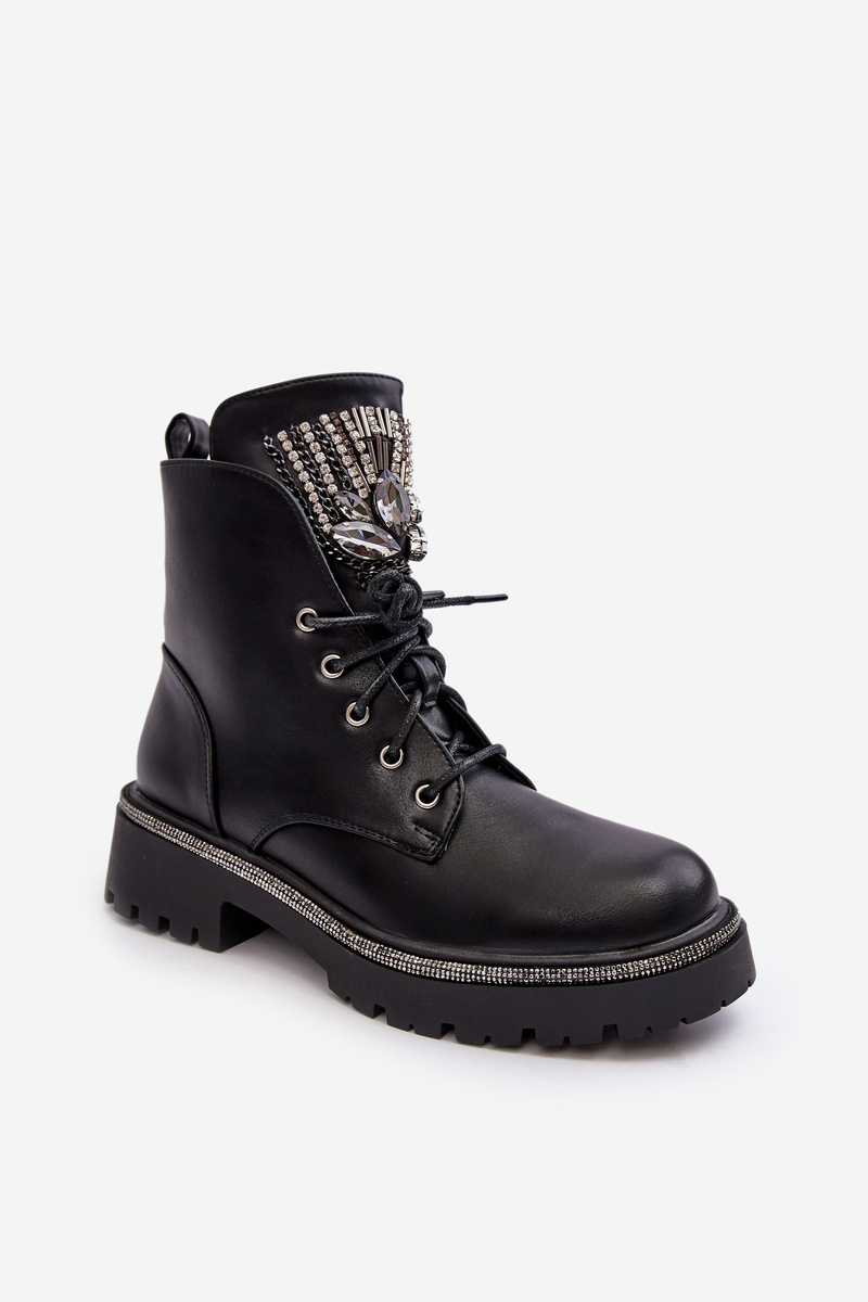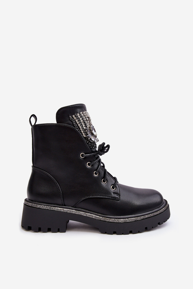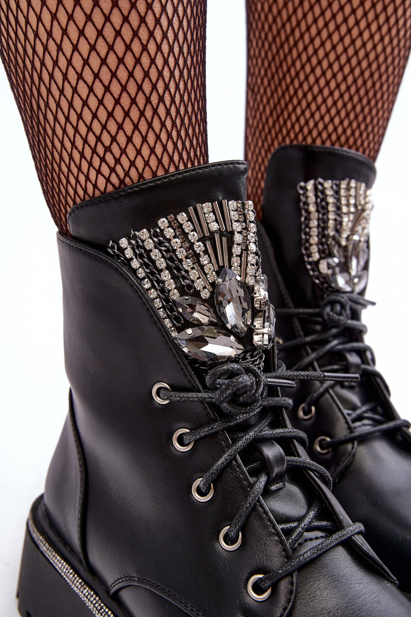 Niskie Botki Workery Z Biżuteryjną Ozdobą Czarne Melenope