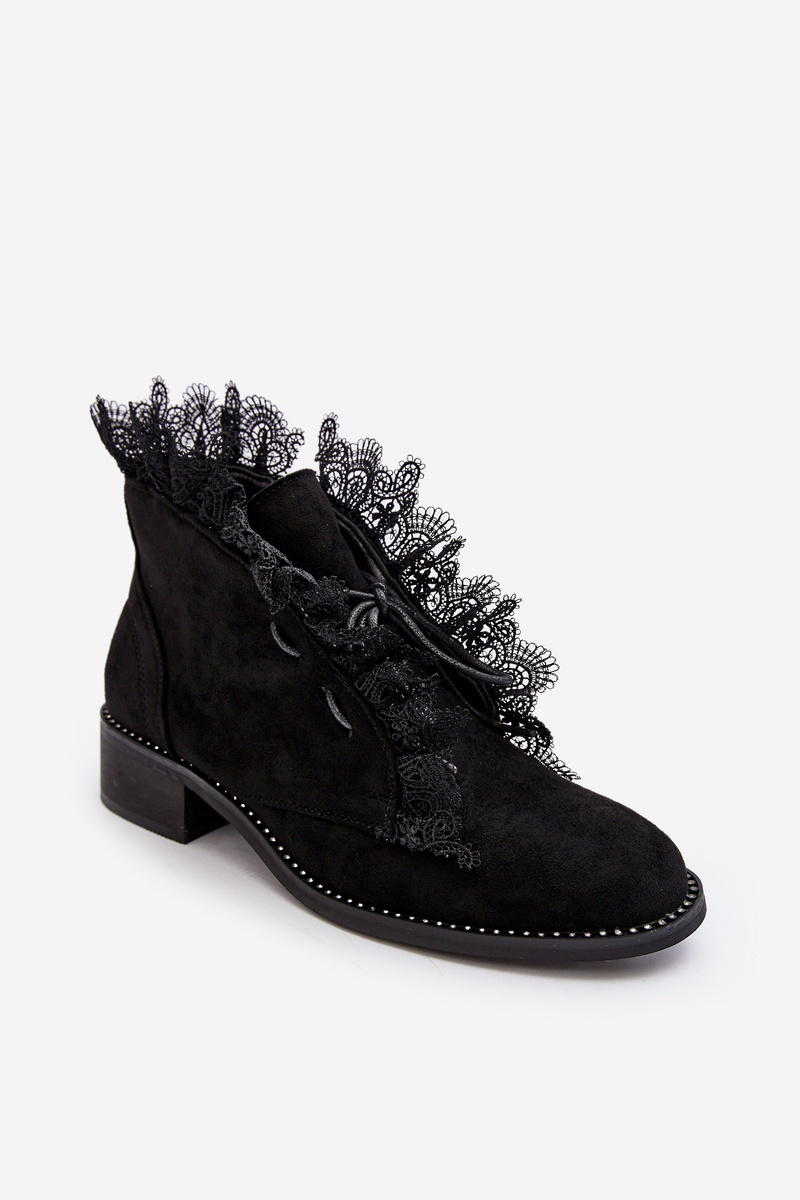 Zamszowe Botki Damskie Na Płaskim Obcasie Czarne Klemovia