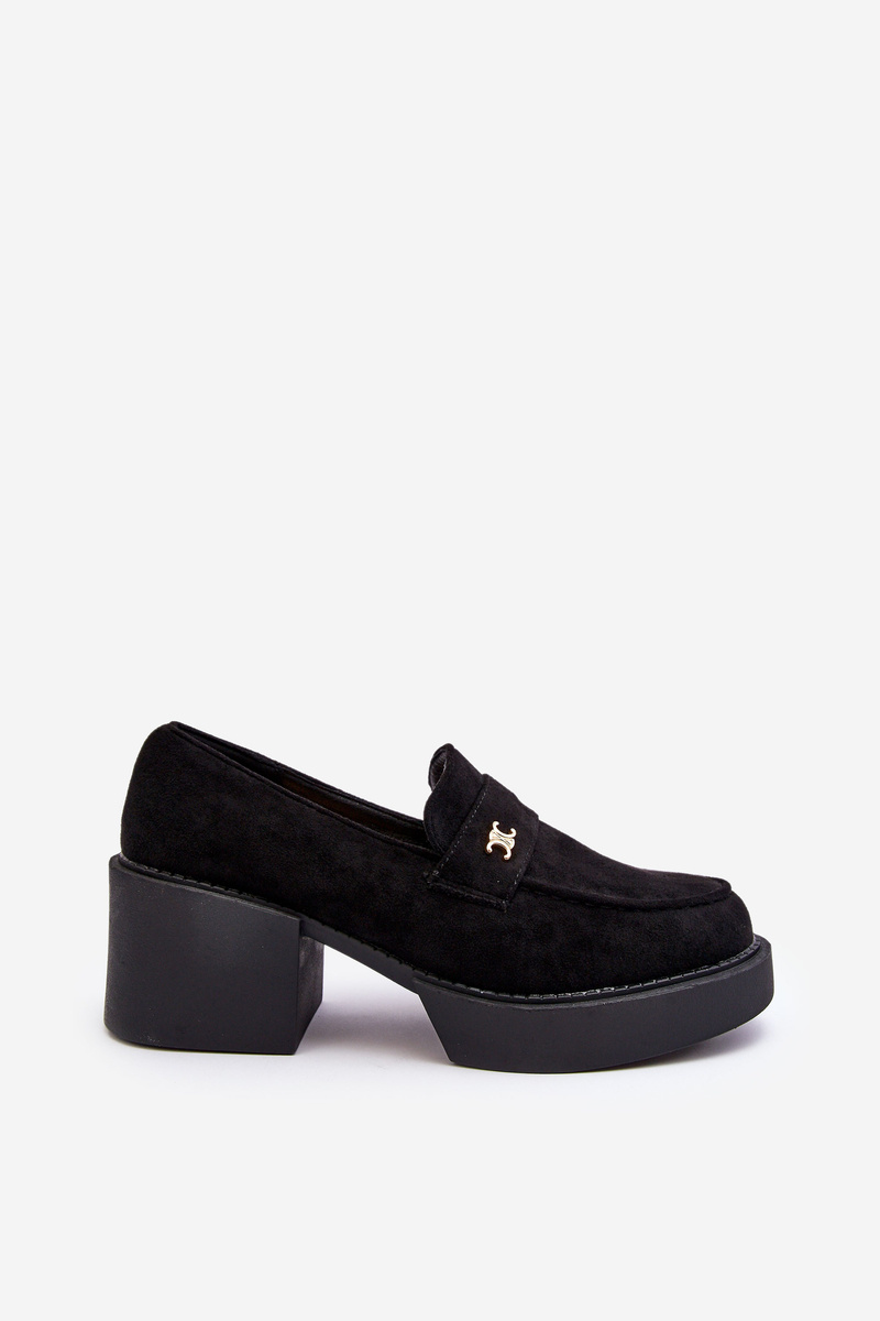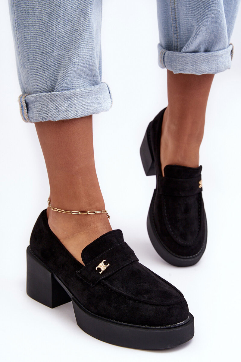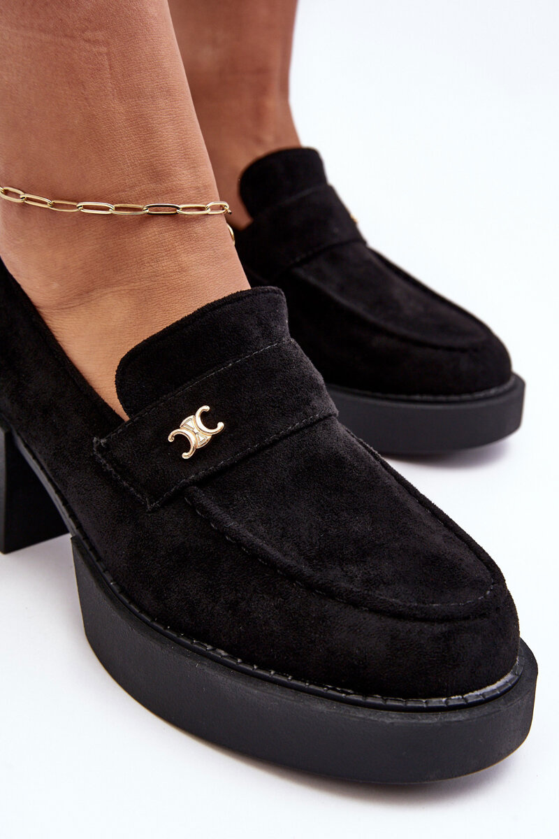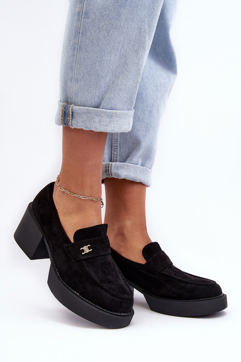 Zamszowe Półbuty Na Obcasie Damskie Czarne Afnira