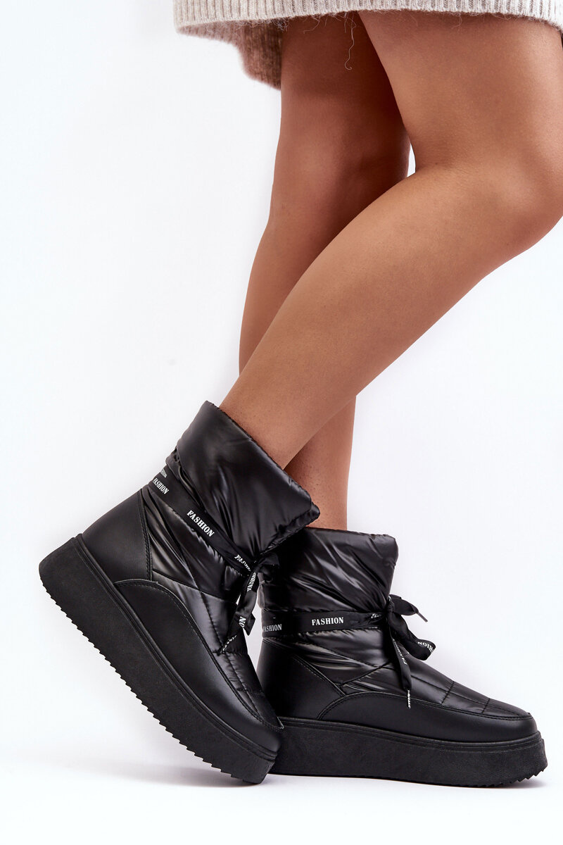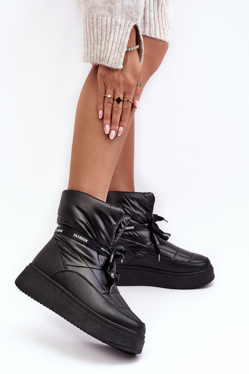 Śniegowce Damskie Z Ozdobnym Wiązaniem Czarne Siracna