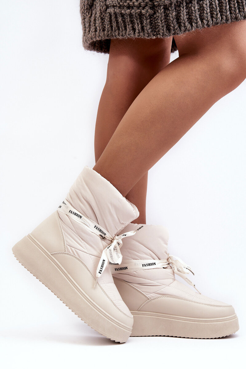 Śniegowce Damskie Z Ozdobnym Wiązaniem Jasnobeżowe Siracna
