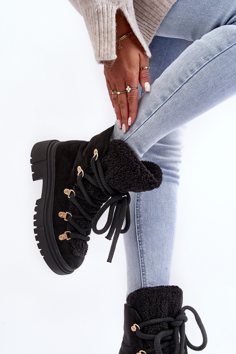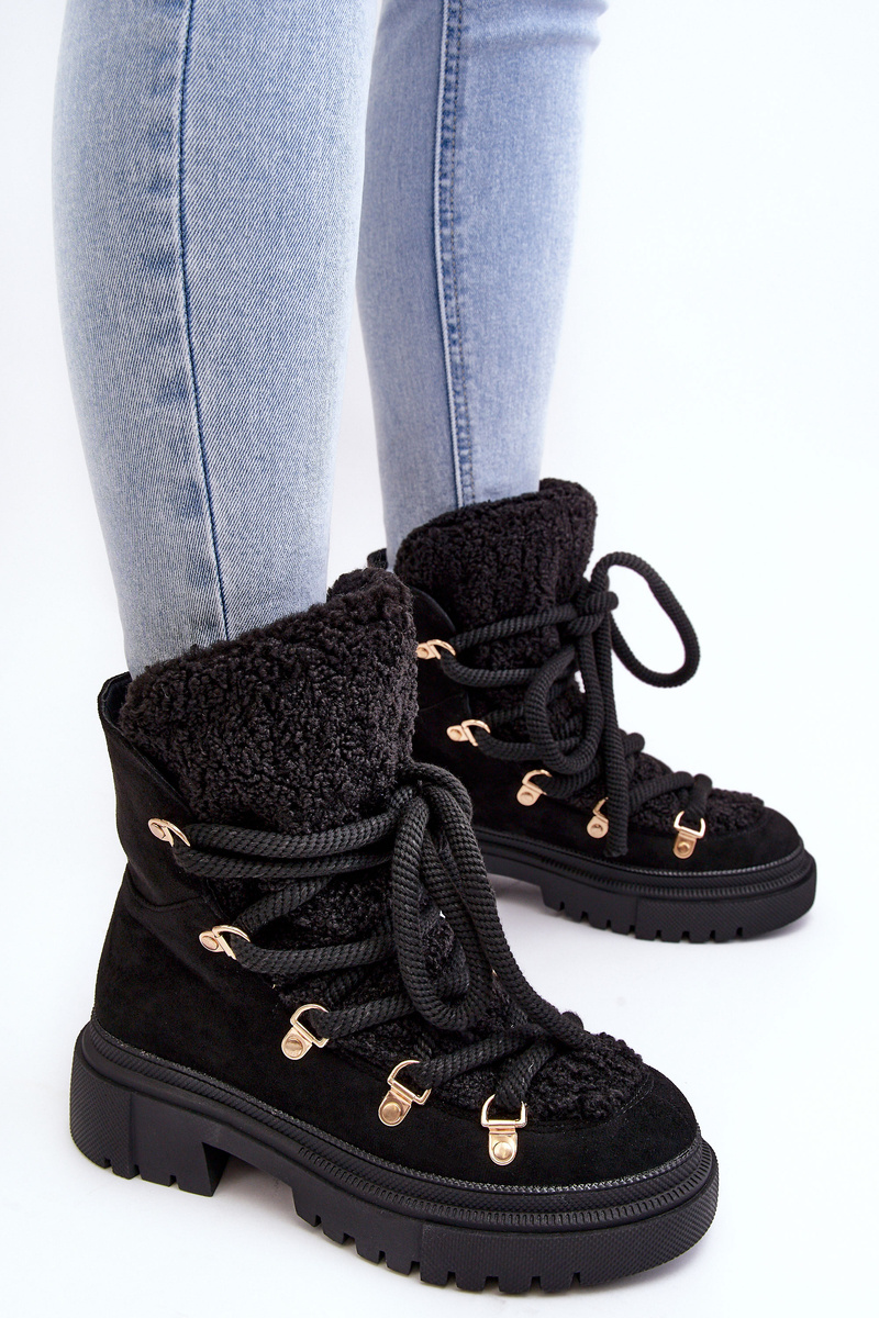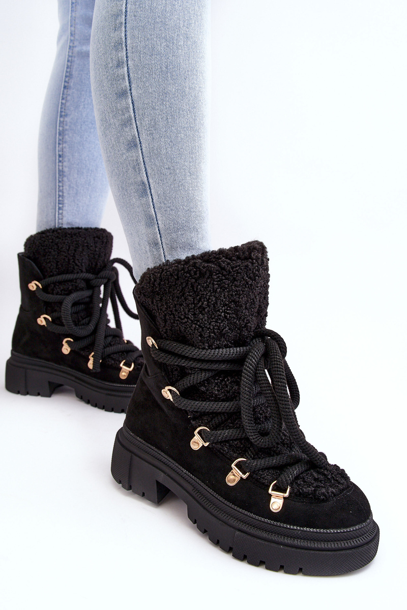 Trapery Śniegowce Damskie Z Wiązaniem Czarne Shala