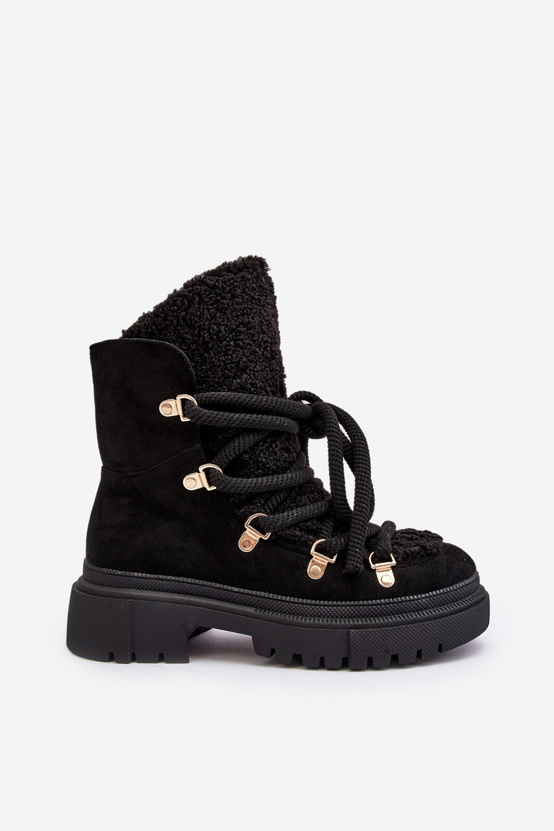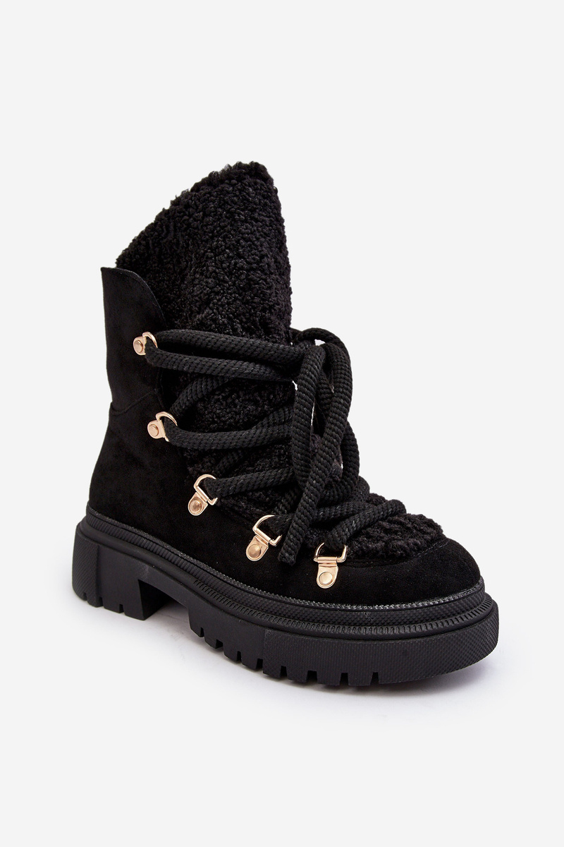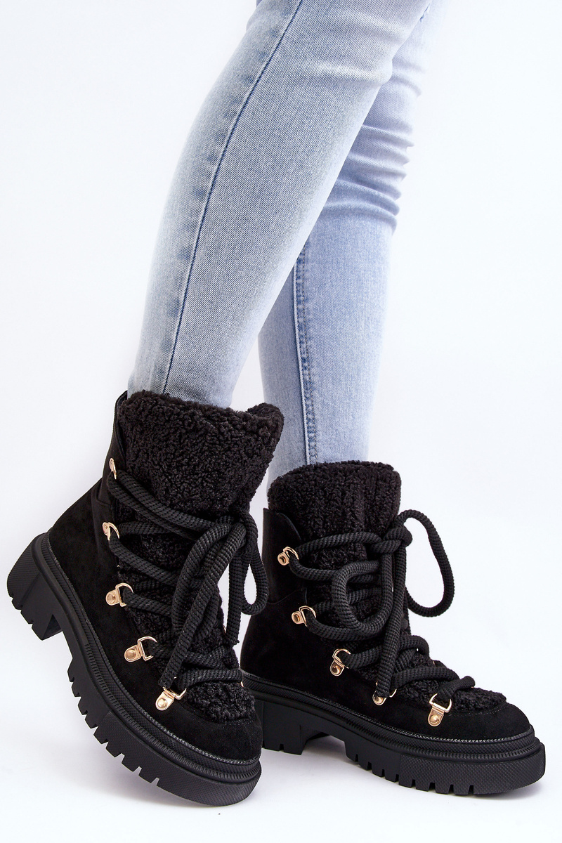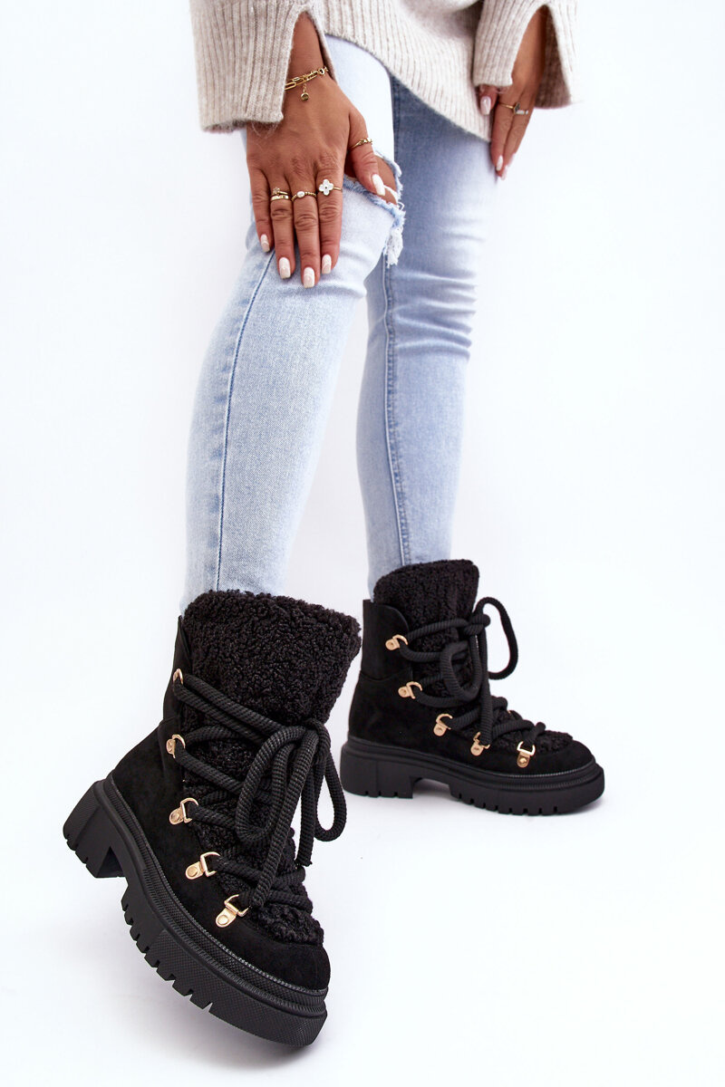 Trapery Śniegowce Damskie Z Wiązaniem Czarne Shala