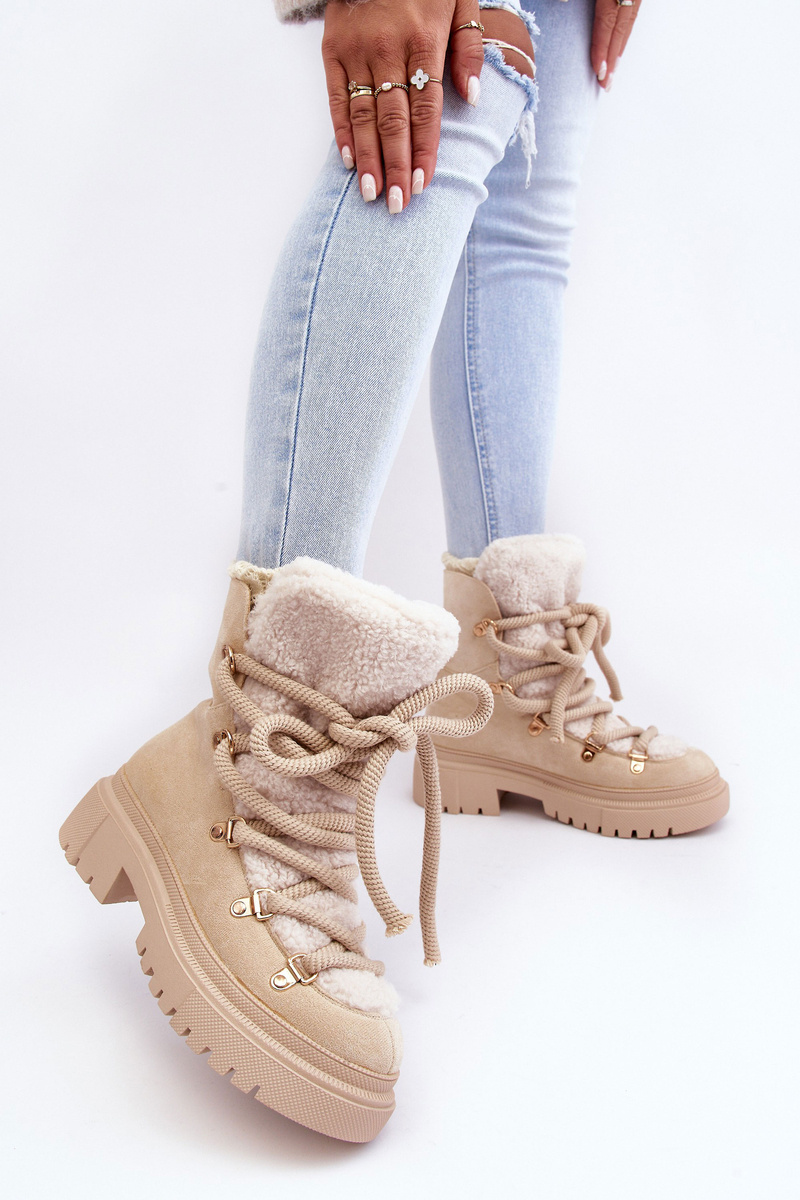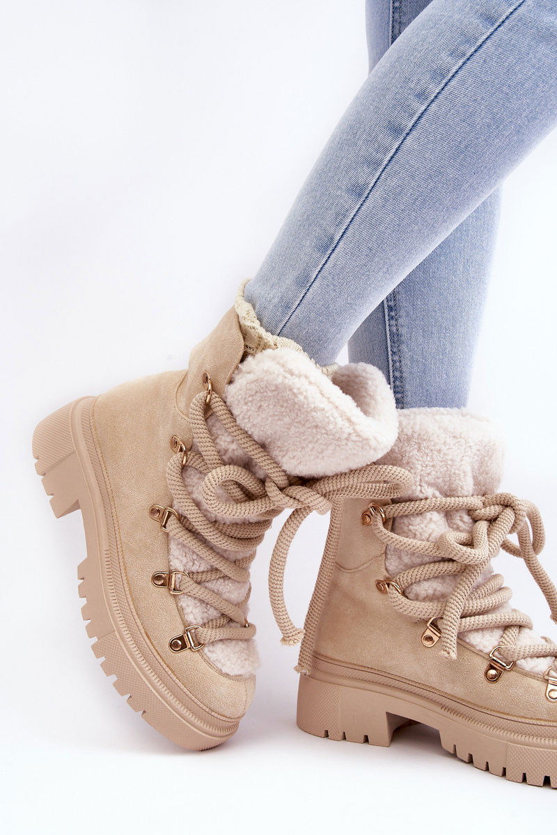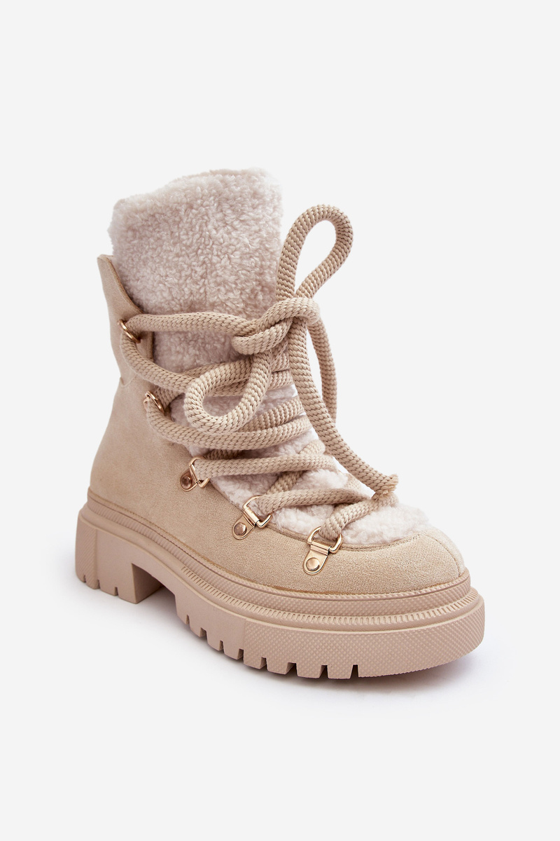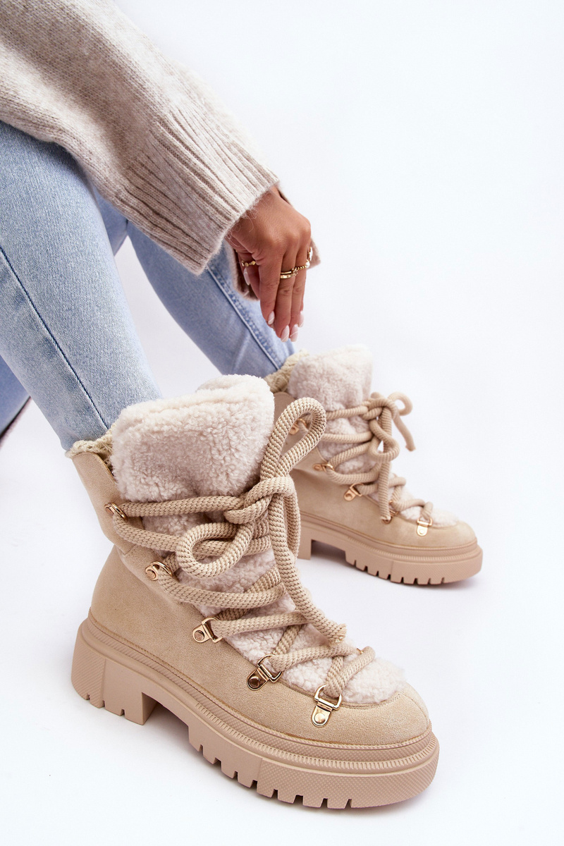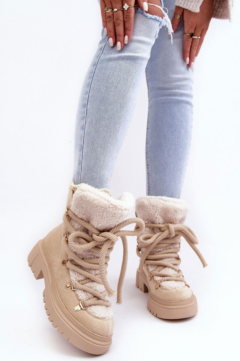 Trapery Śniegowce Damskie Z Wiązaniem Jasnobeżowe Shala