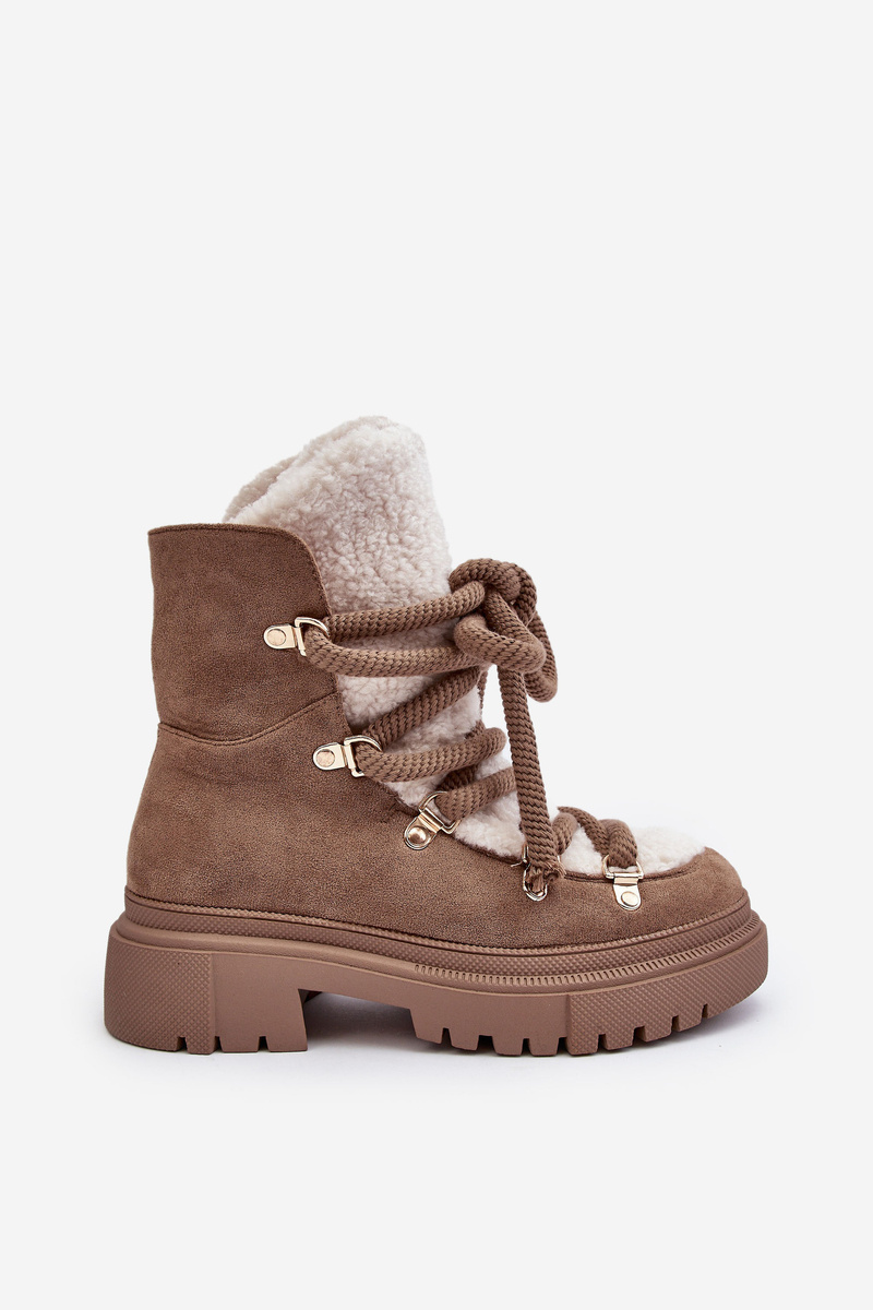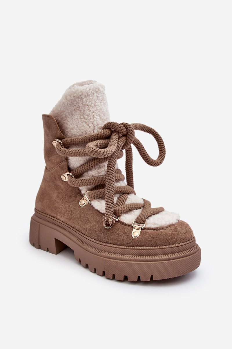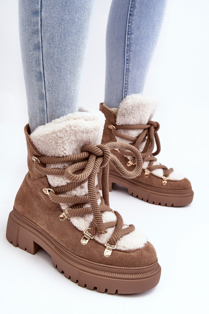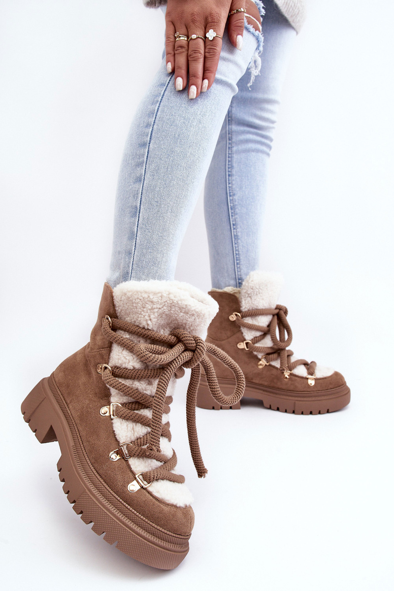 Trapery Śniegowce Damskie Z Wiązaniem Beżowe Shala