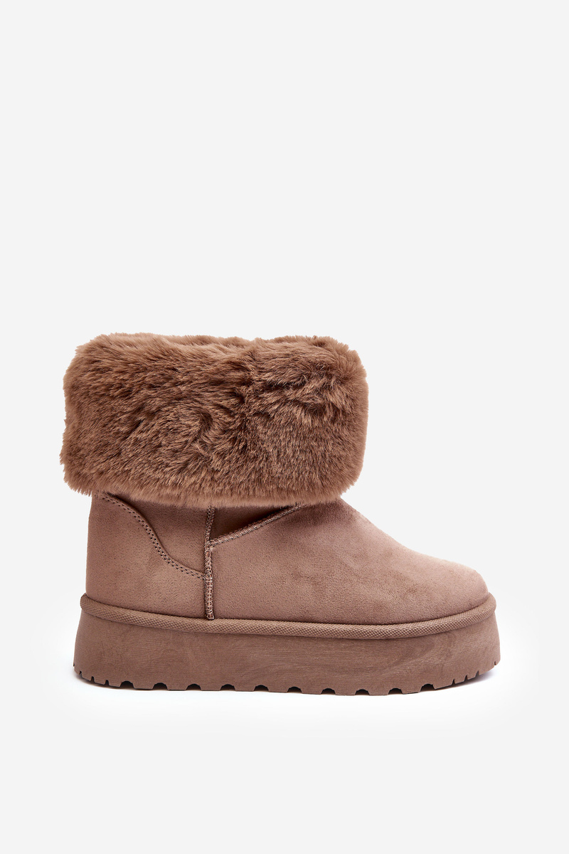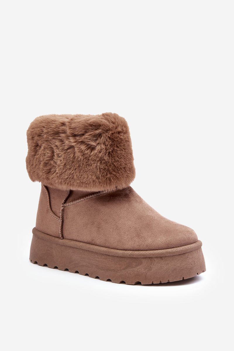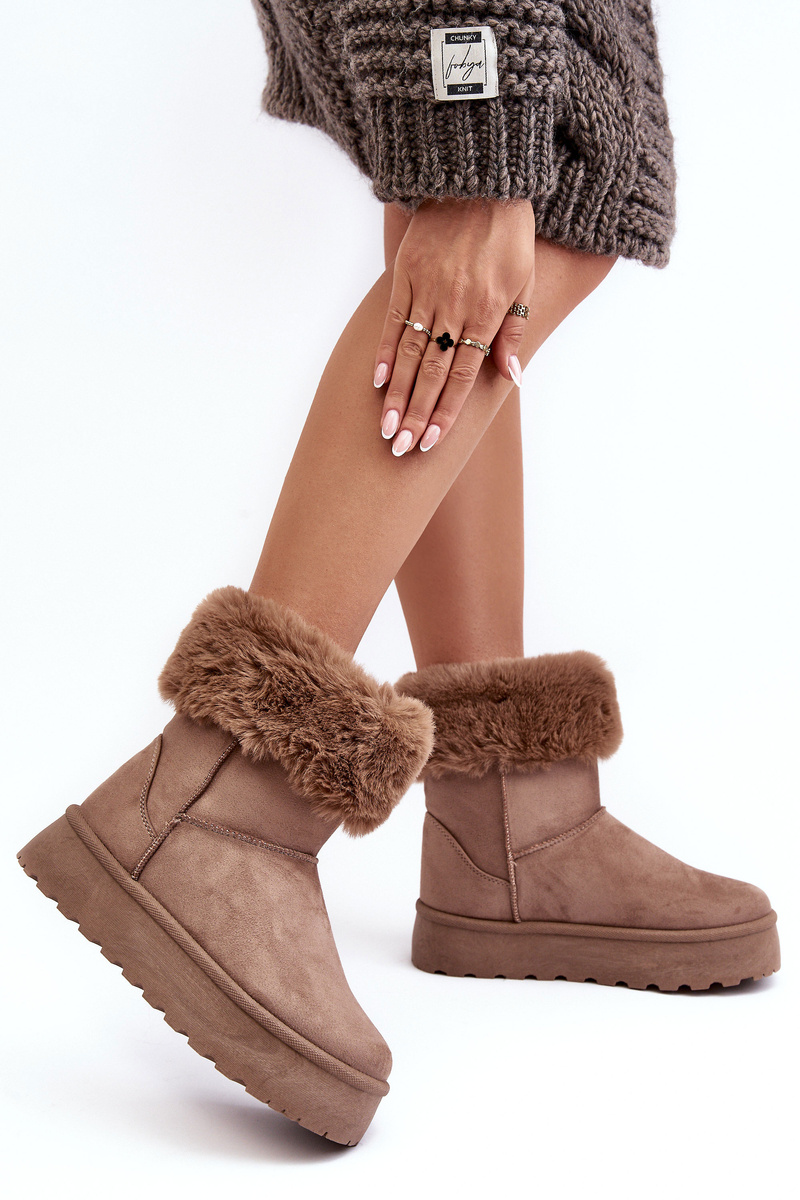 Modne śniegowce idealnie sprawdzą się w sezonie jesienno-zimowym. Wykonane z eko zamszu. Osadzone na grubej podeszwie. Wnętrze ocieplone grubym futerkiem. Model wsuwany z cholewką za kostkę. Idealne dla osób, które cenią sobie wygodę oraz ciepło w mroźne dni! Po prostu musisz je mieć! Przy wyborze rozmiaru prosimy sugerować się tabelą rozmiarów.