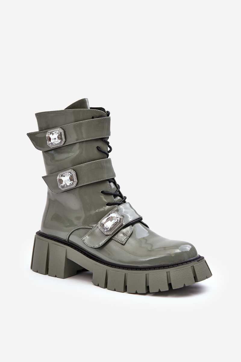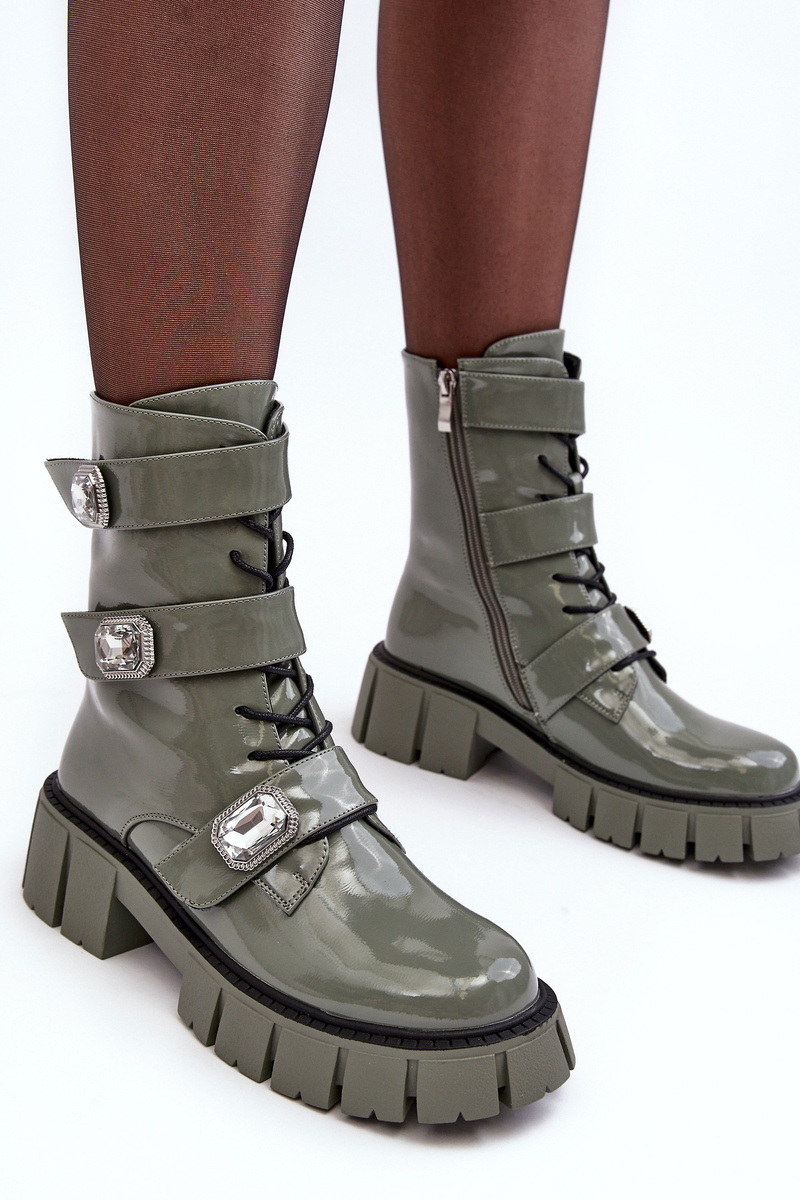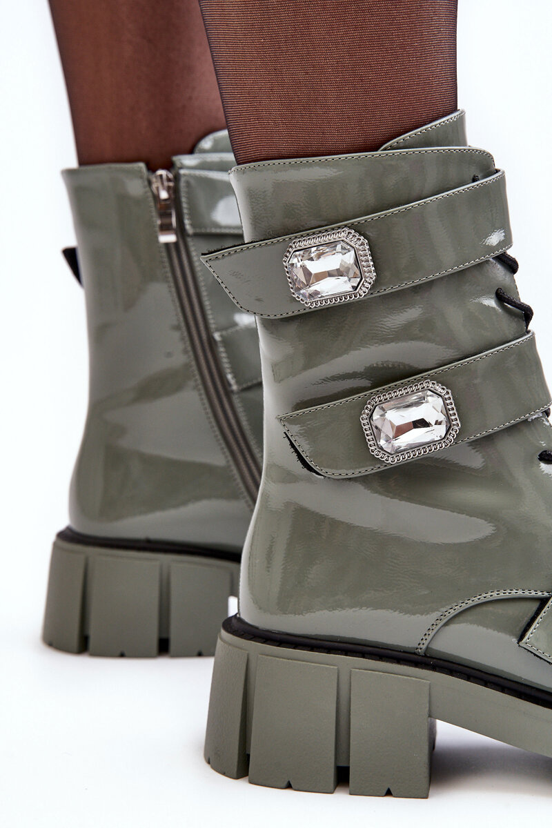 Workery Botki Damskie Lakierowane Zielone S.Barski MR870-61