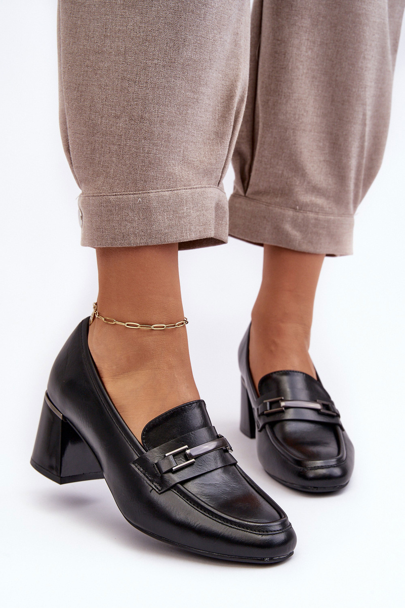 Eleganckie czółenka zostały wykonane z eko skóry. Osadzone na obcasie w postaci słupka. Noski zaokrąglone. Z przodu na pasku ozdoba z tworzywa sztucznego. Dodatkowo zapiętek jest usztywniony. Miękka skórzana wkładka zapewni komfort podczas użytkowania. Ten model powinien znaleźć się w Twojej szafie! Przy wyborze rozmiaru prosimy sugerować się tabelą rozmiarów.