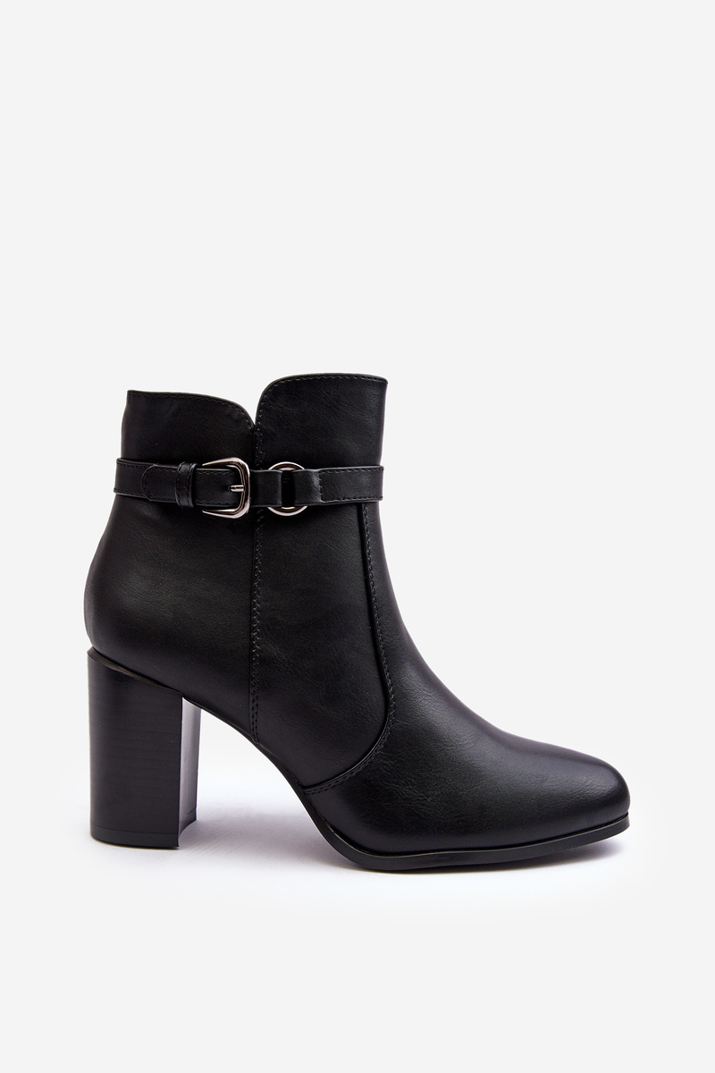 Skórzane Damskie Botki Na Słupku Z Klamrą Czarne Lasima