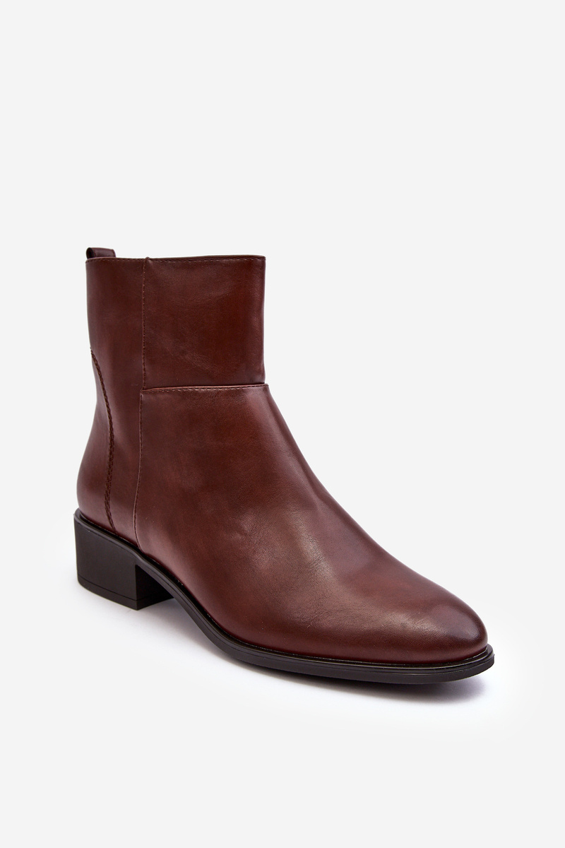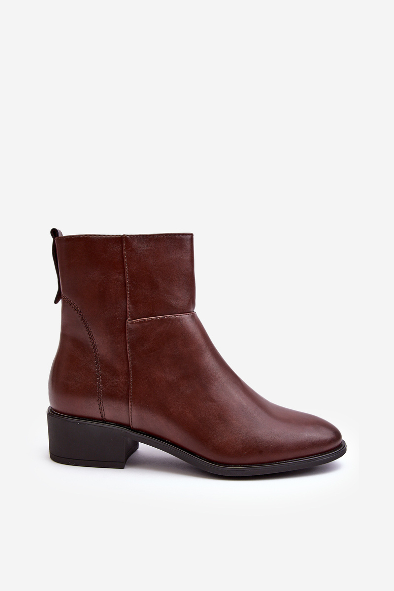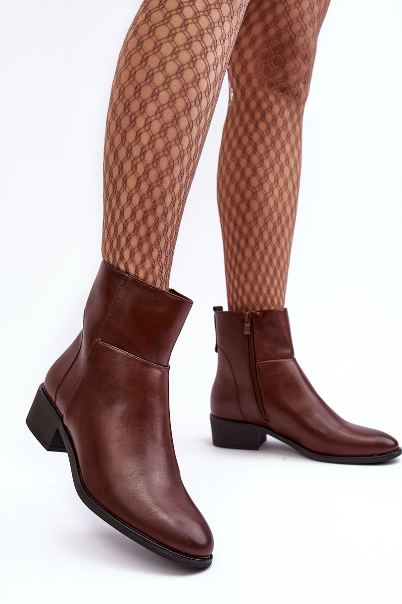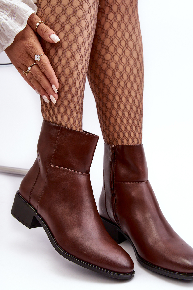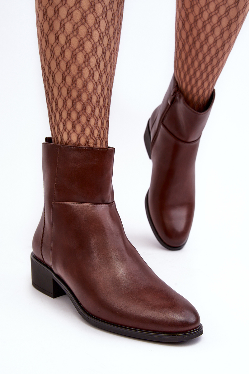 Damskie Skórzane Botki Na Suwak Brązowe Semotti
