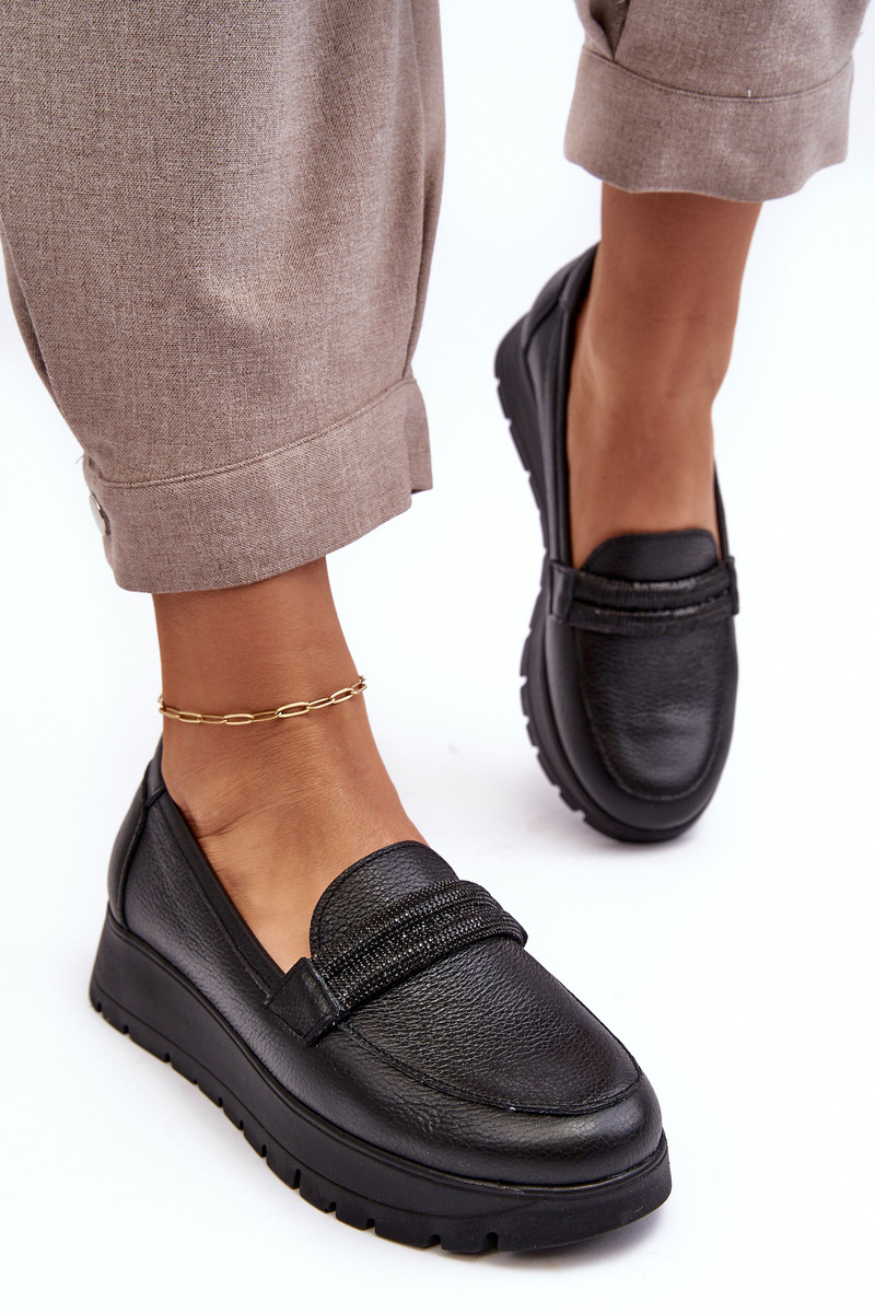 Skórzane Półbuty Na Platformie Z Ozdobą Czarne Lemar Lehira