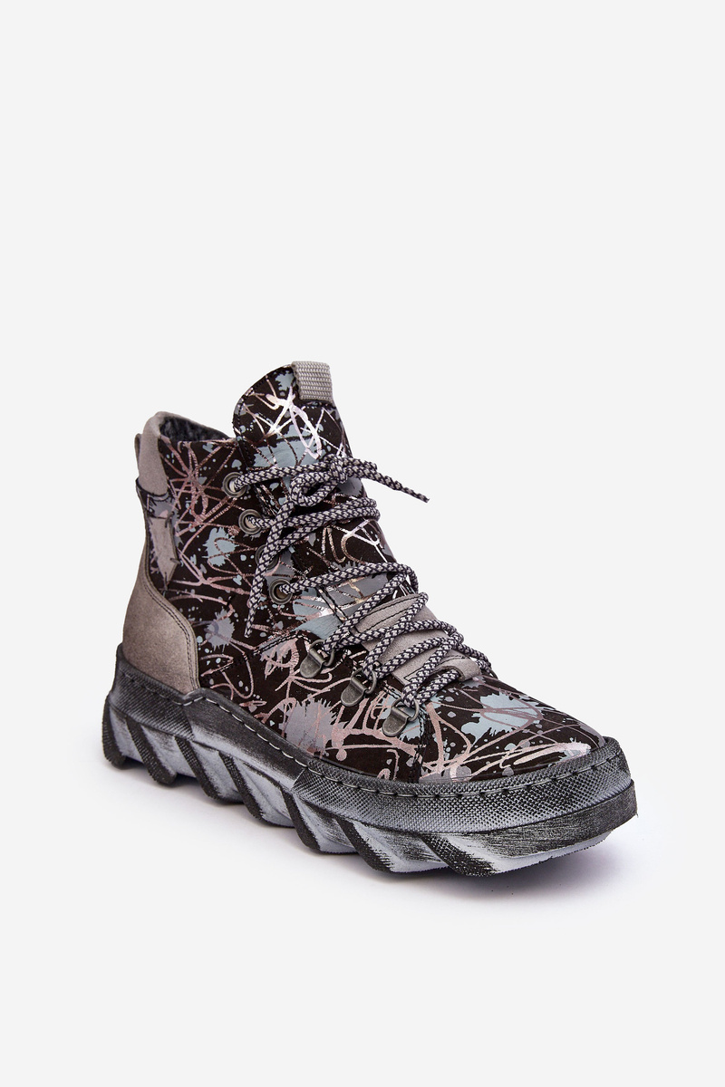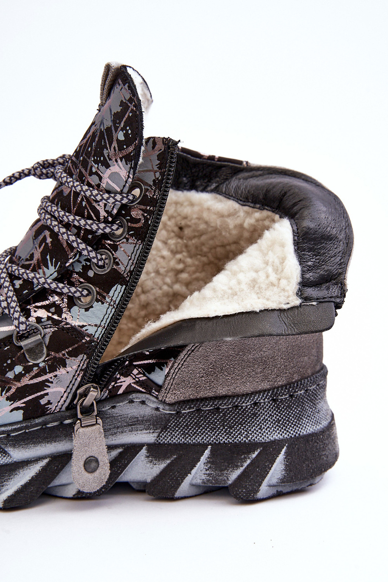Skórzane Damskie Ocieplane Botki Maciejka 06146-03 Szare