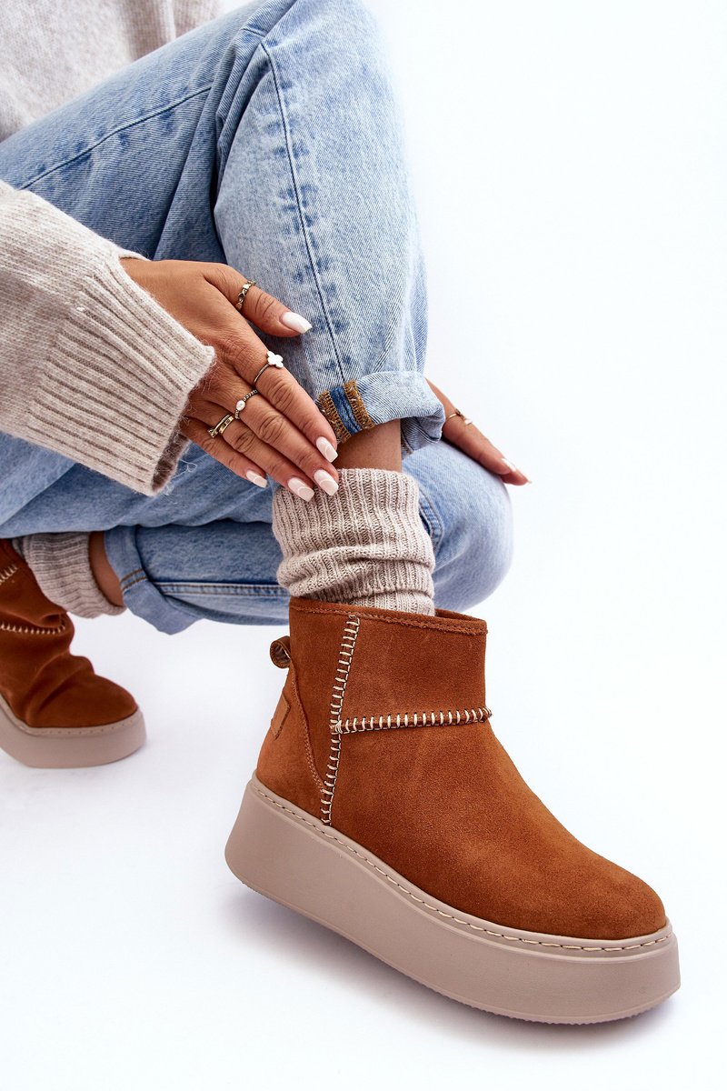 Damskie Zamszowe Śniegowce Maciejka 06257-29 Brązowe
