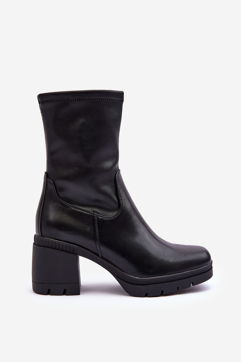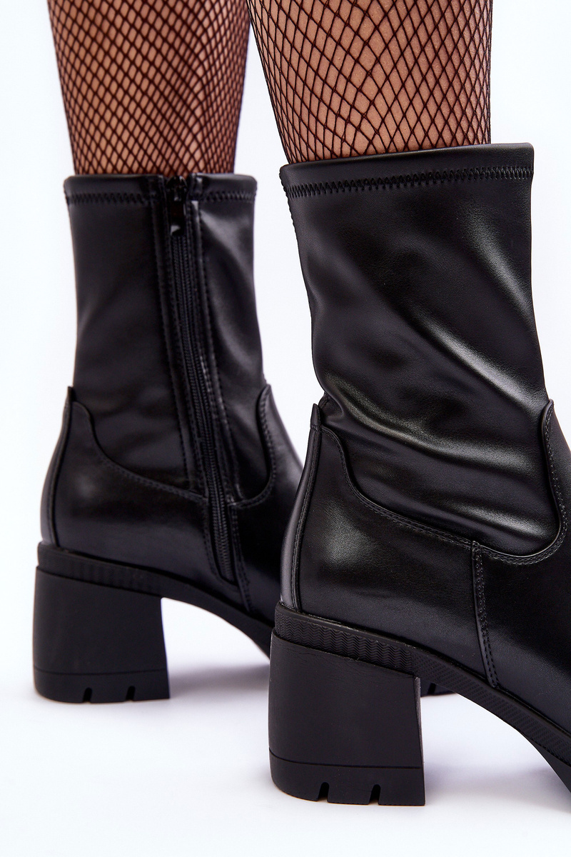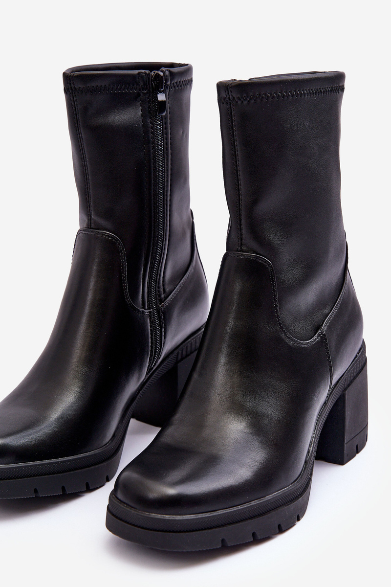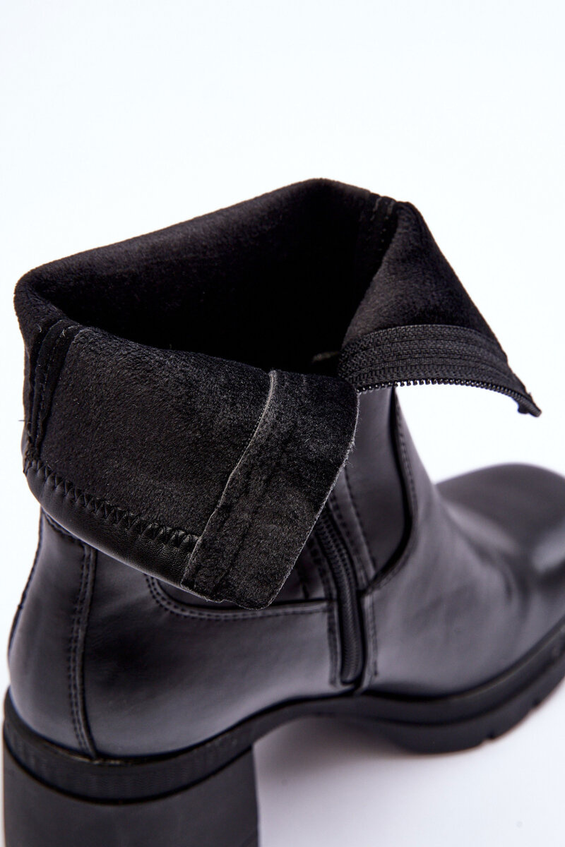 Skórzane Botki Damskie Na Masywnym Obcasie Czarne Fllavie