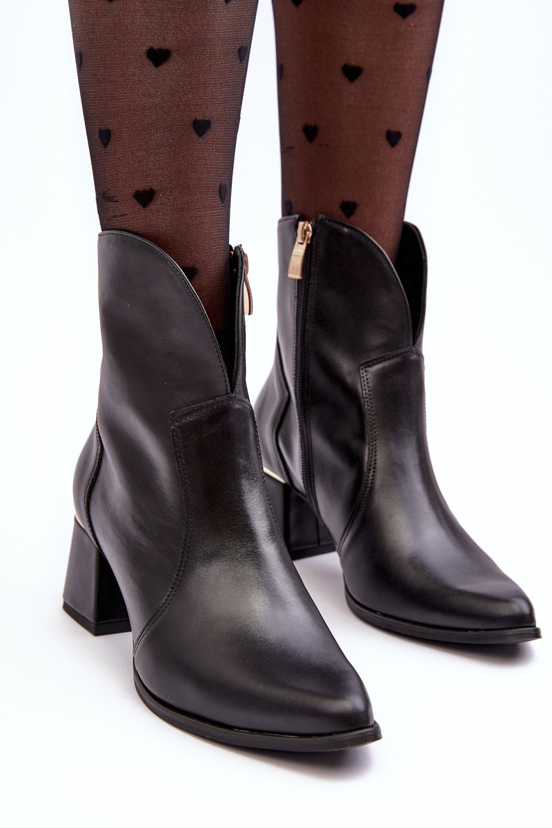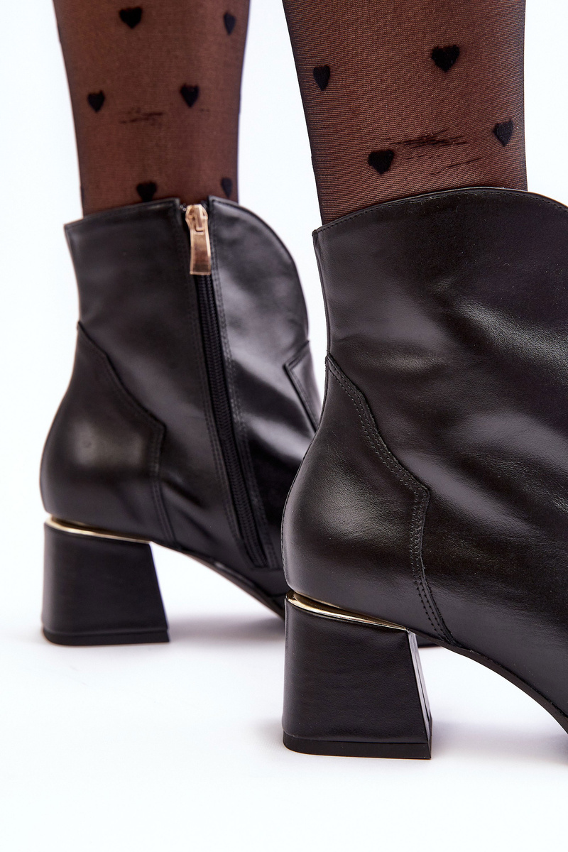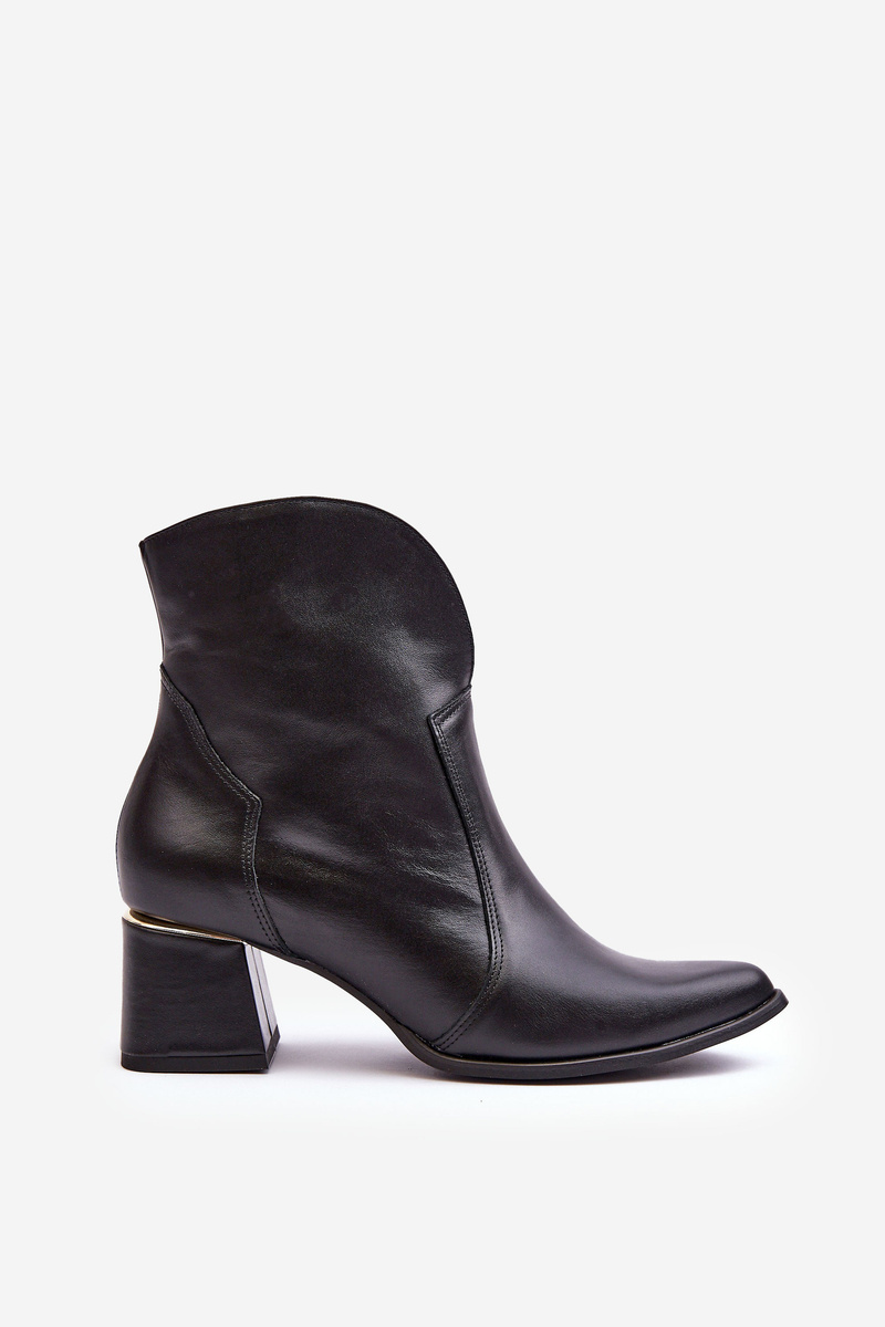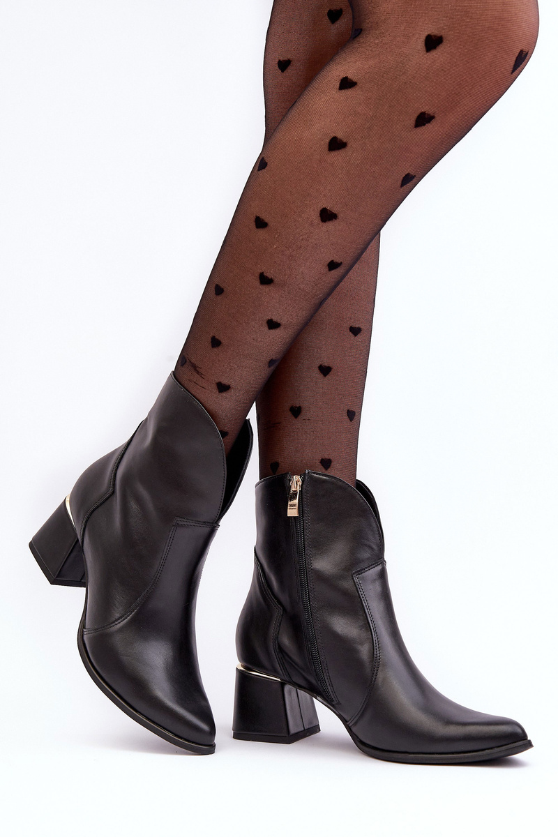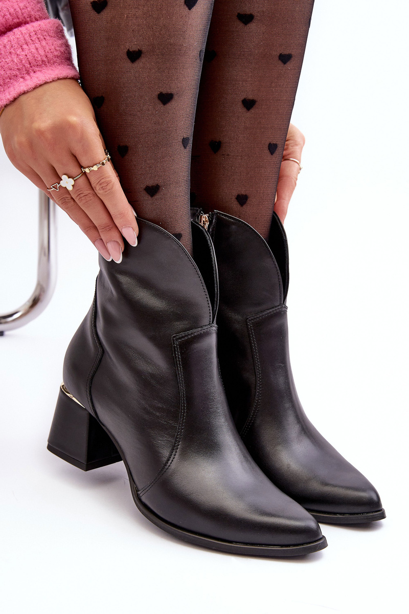 Skórzane Botki Kowbojki Damskie Na Obcasie Czarne Lewski 3166/B/2