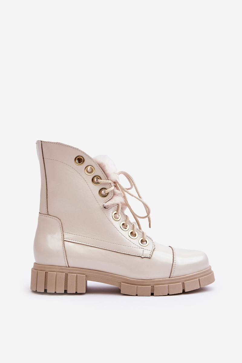 Skórzane Botki Damskie Z Futerkiem Jasnobeżowe Lewski 3296