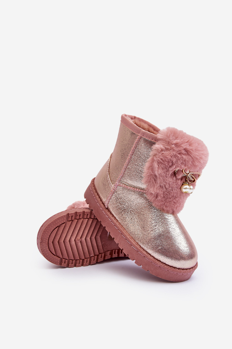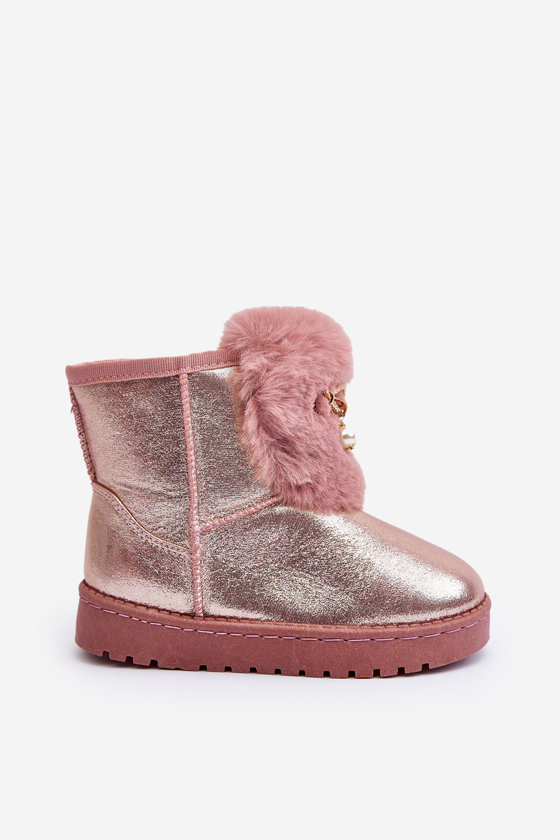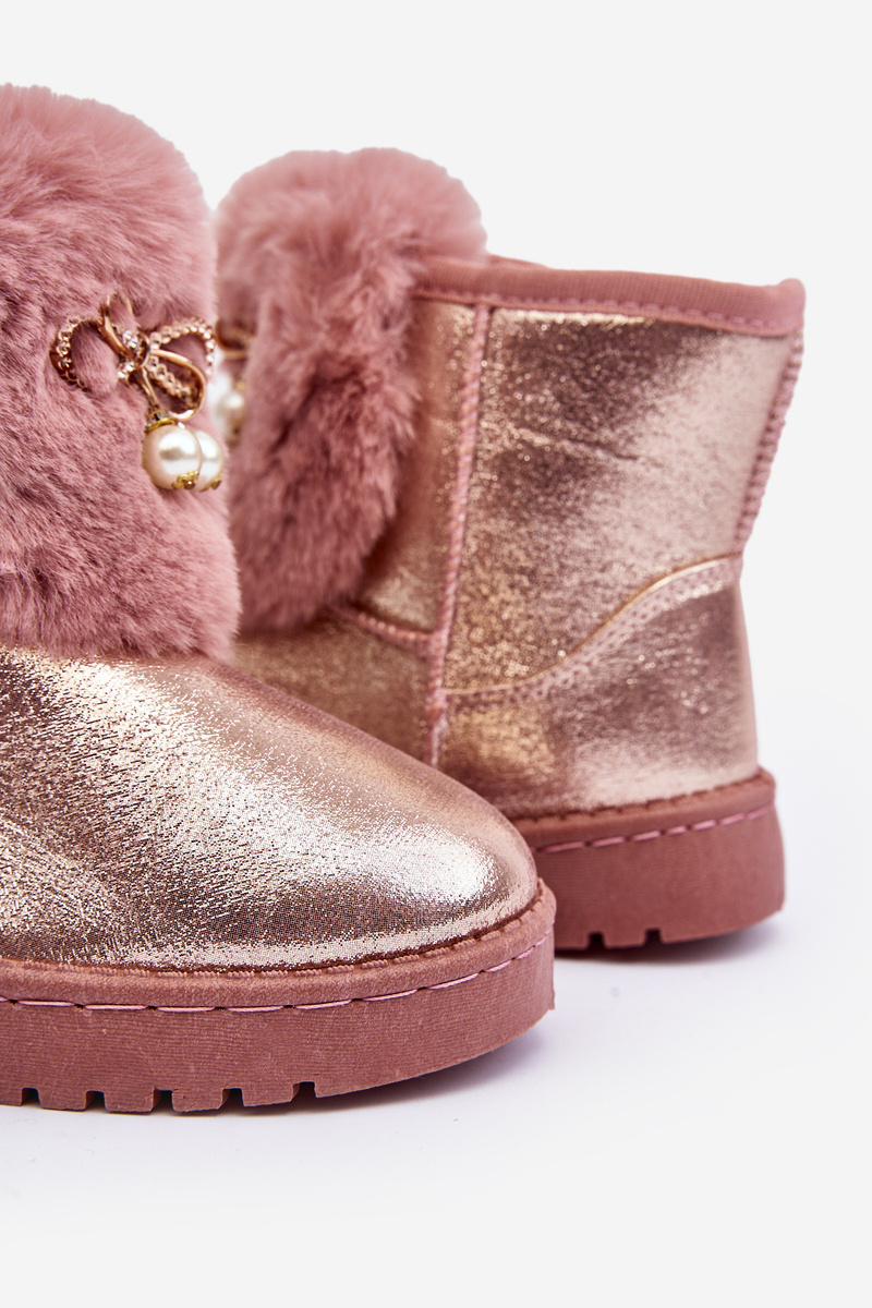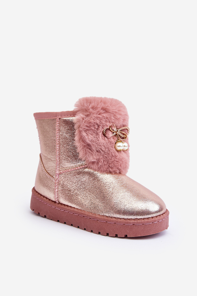 Dziecięce Śniegowce Ocieplane Futerkiem Różowe Hasiba