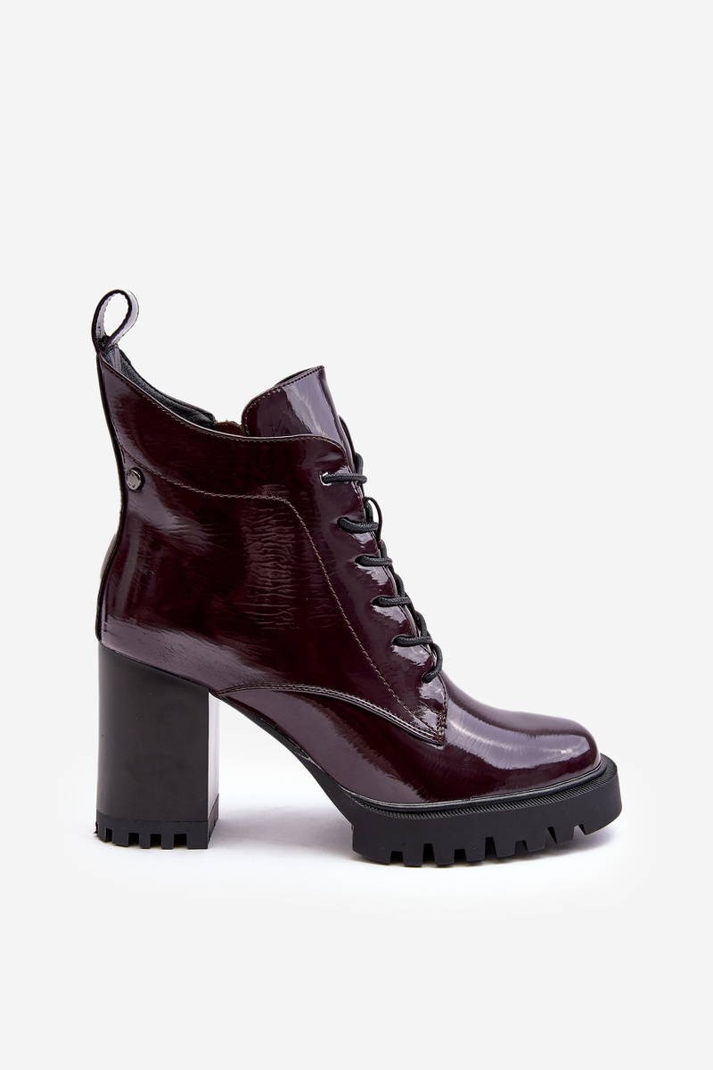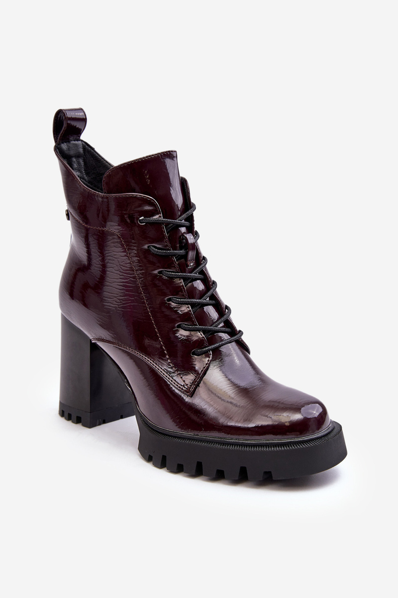Botki Lakierowane Na Słupku Ocieplane Bordowe D&A MR870-54
